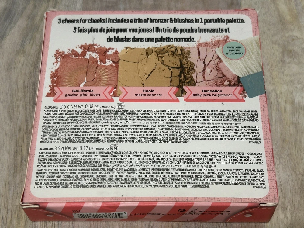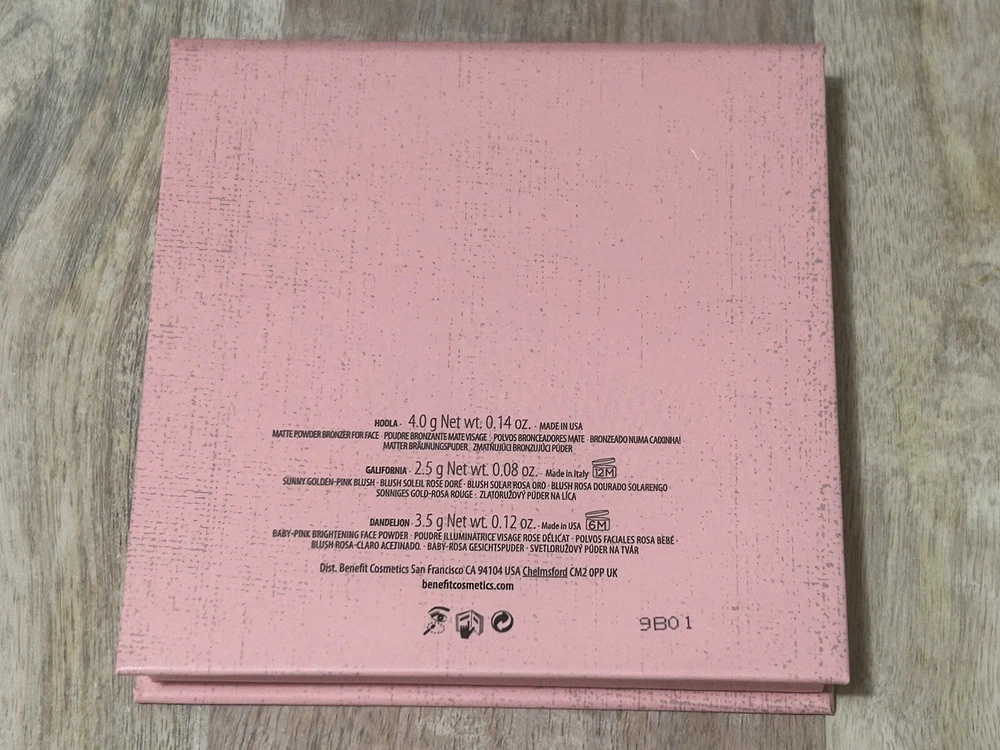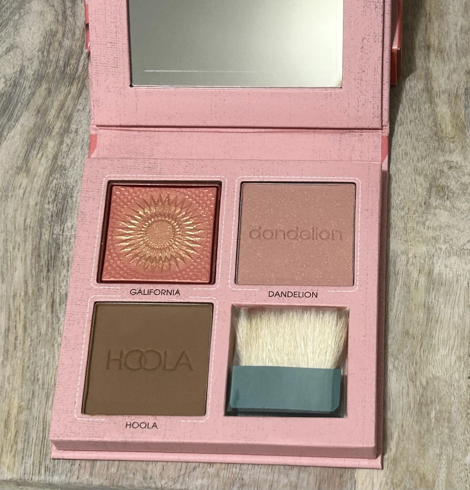 Benefit blush and bronze on the go palette Includes powder brush Galifornia 0.08oz/2.5g Dandelion 0.12oz/3.5g Hoola 0.14oz/4g