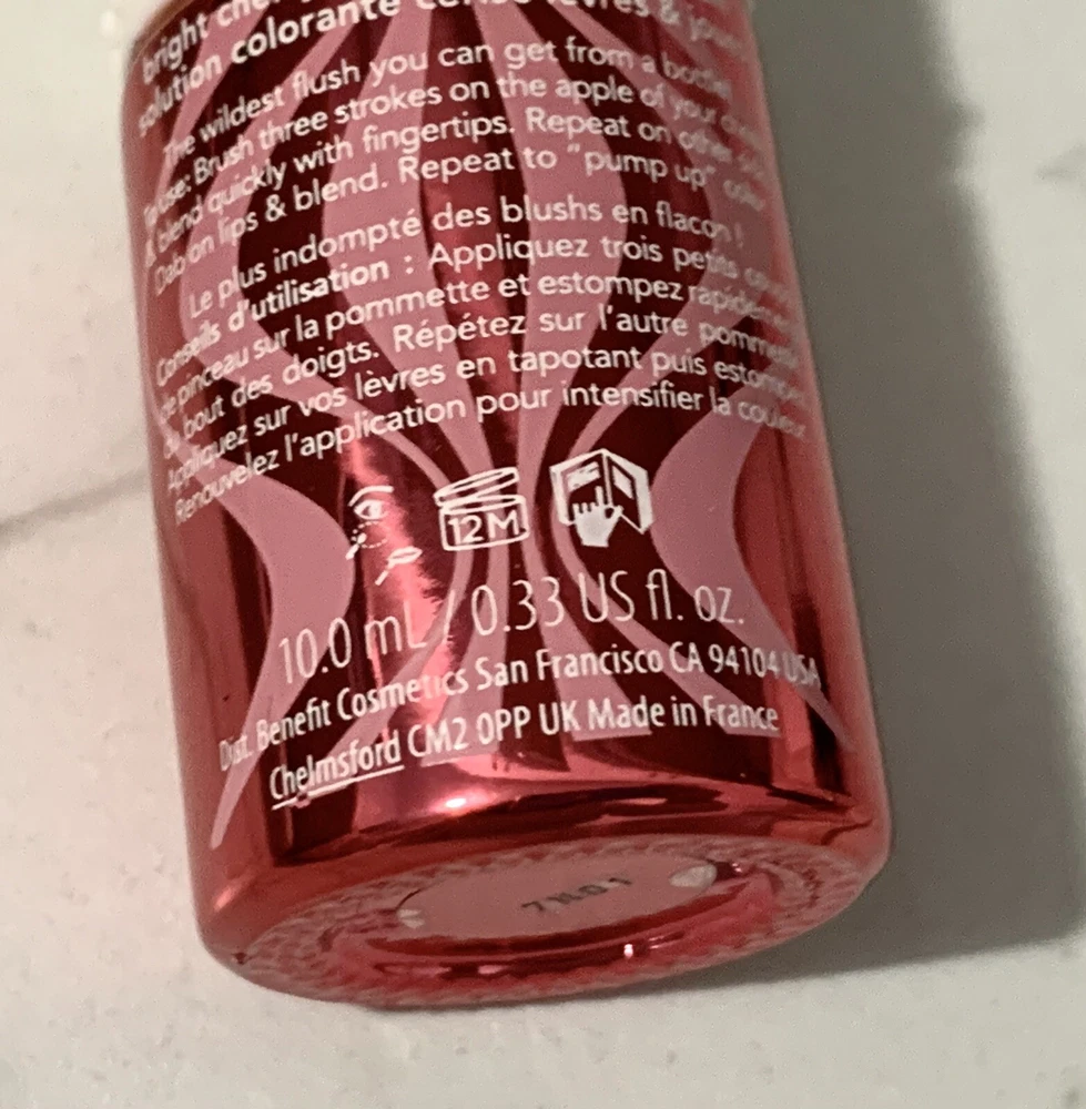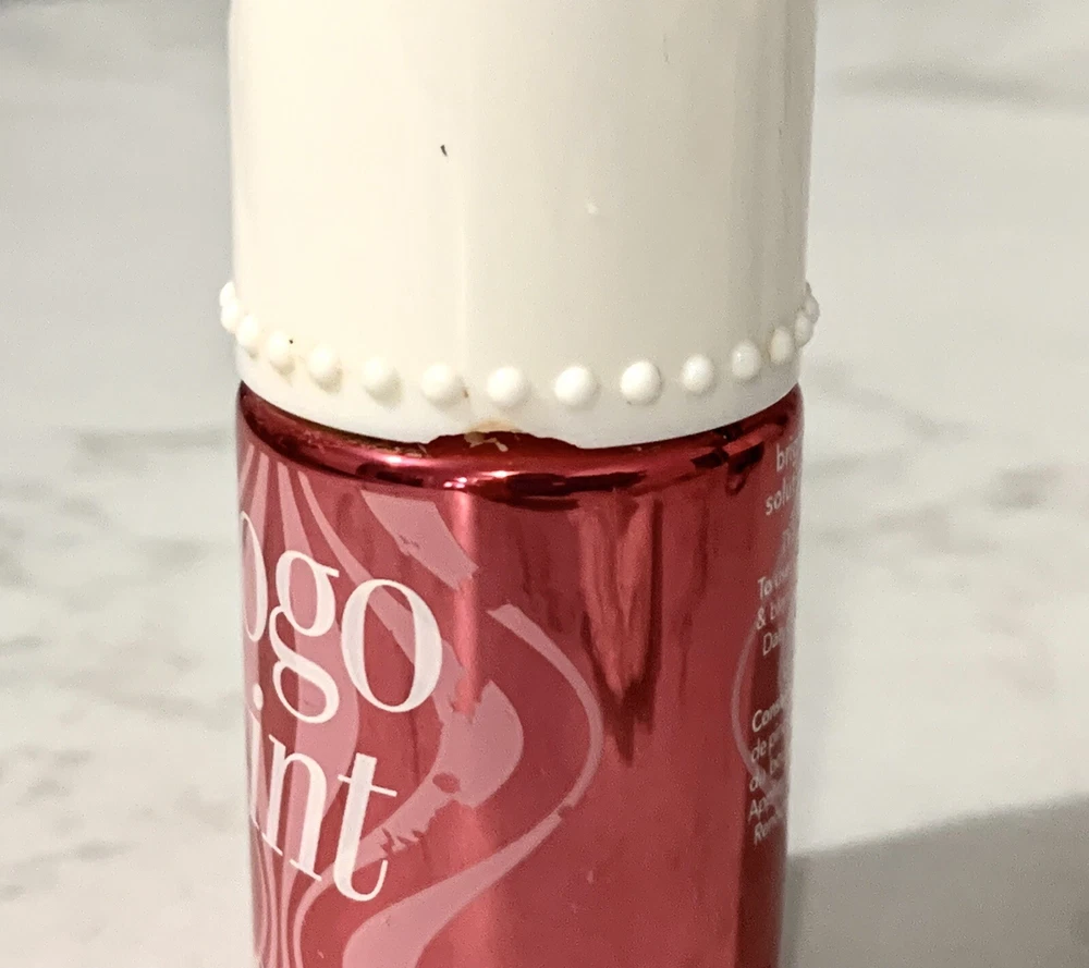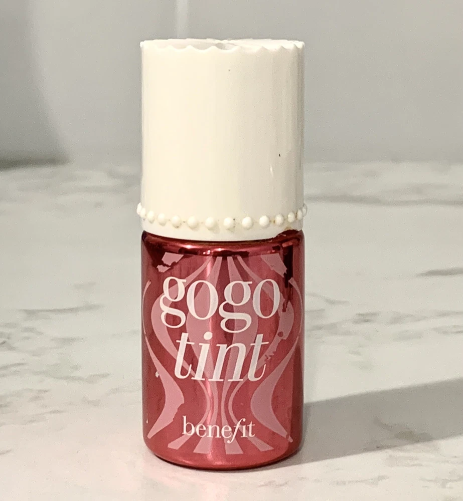 Benefit~Gogo Tint Bright Cherry Tinted Lip & Cheek Stain~0.33 oz Small chip in edge of lid, pictured