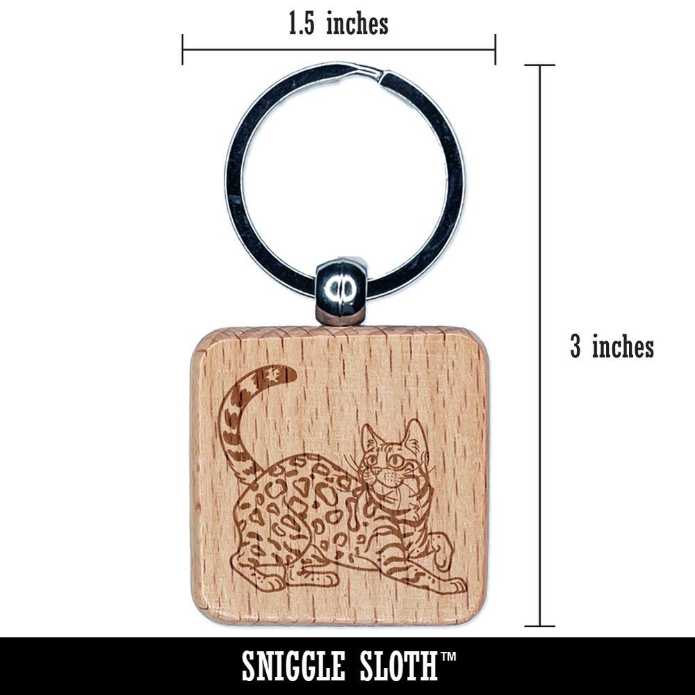 Bengal Cat Wood Keychain Charm with Engraved Design
