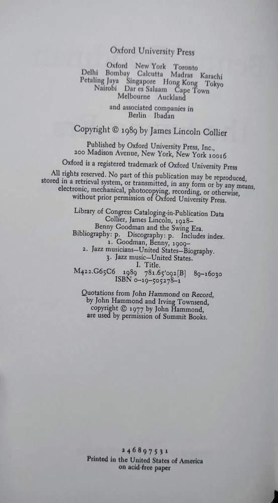 Benny Goodman and the Swing Era by James Lincoln Collier (1989, Hardcover) 1st