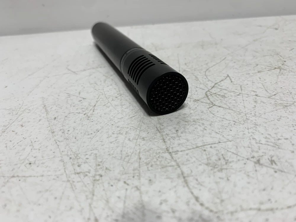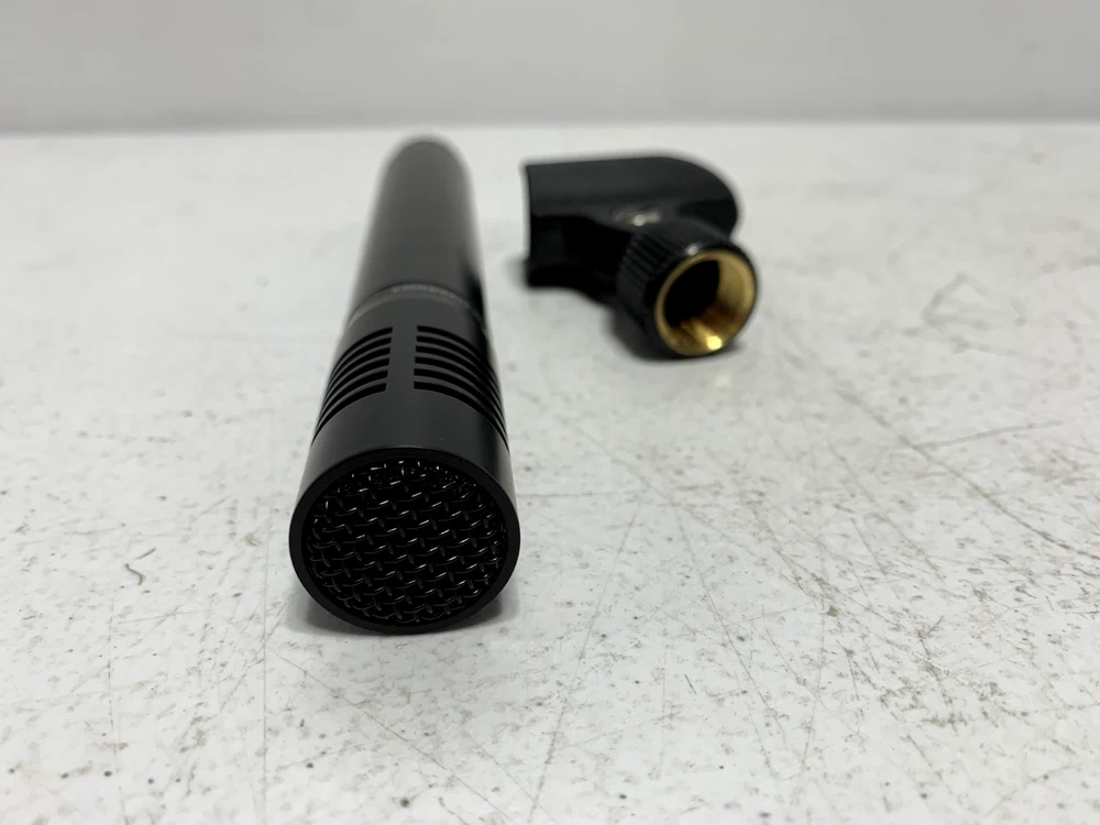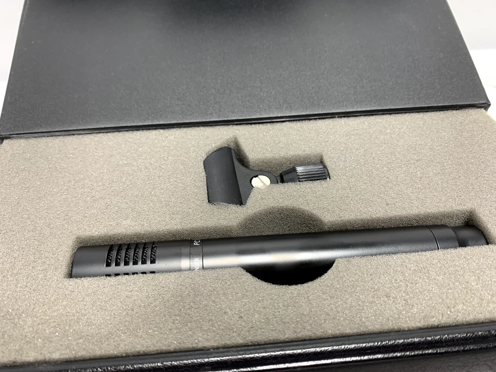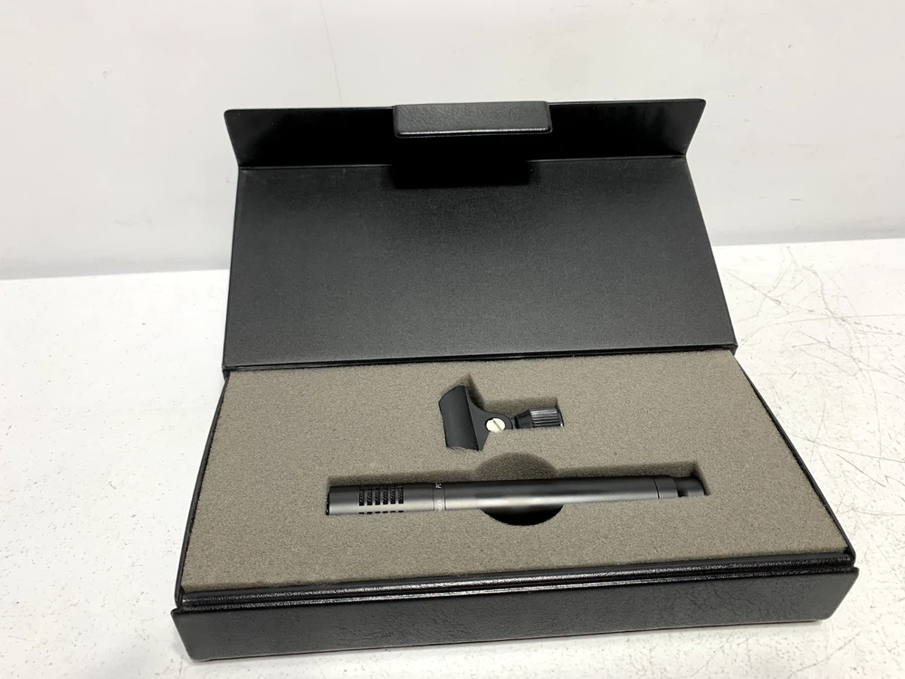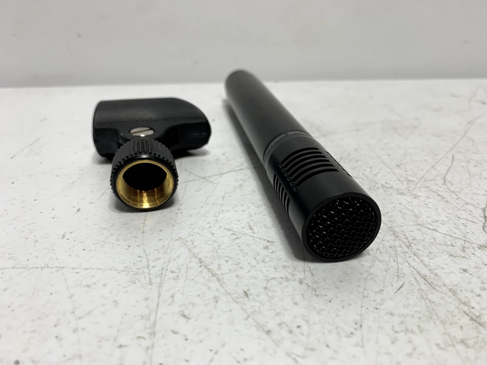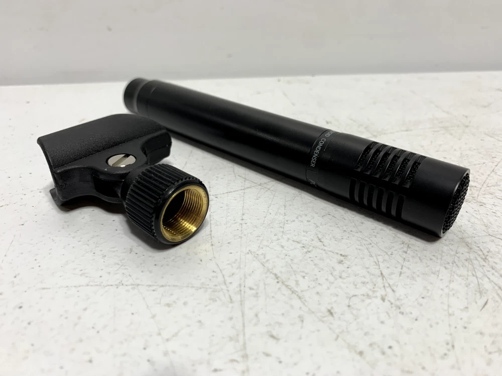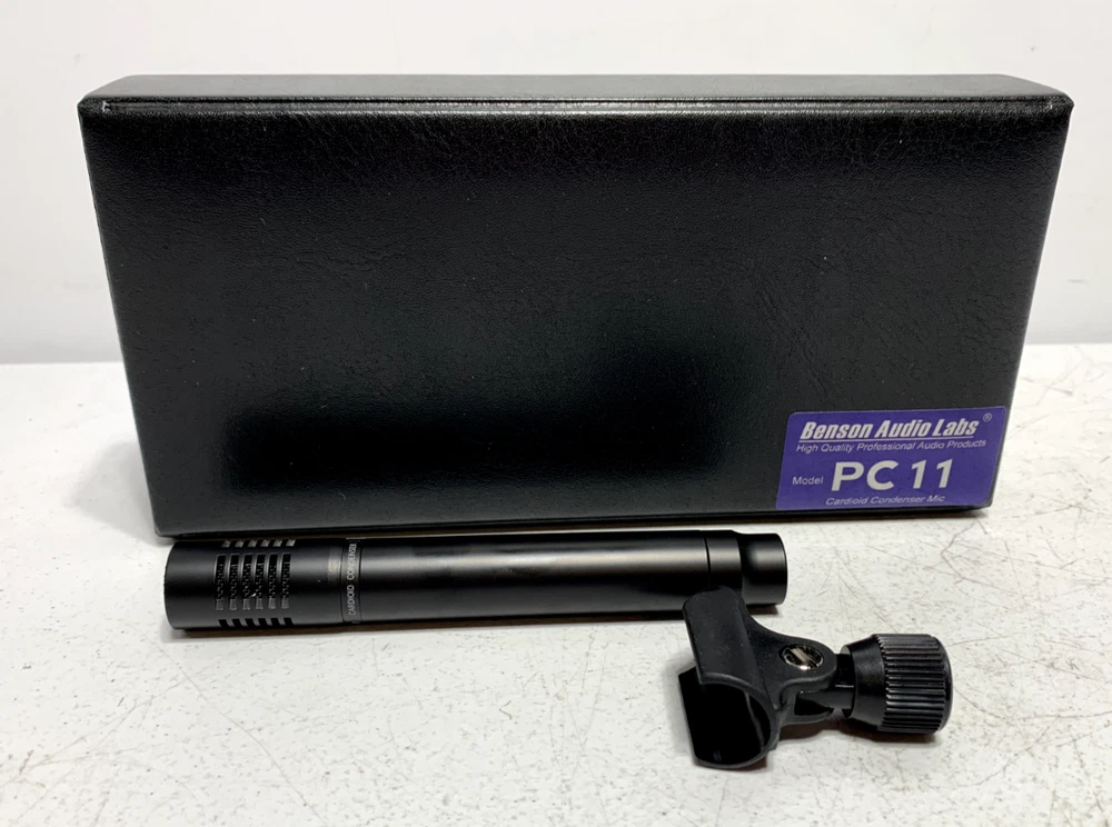 This is a NEW - unused Benson Audio Labs PC11 Condensor Stereo Microphone 80's Black Stand-mounted Buyers and Re-sellers, don't miss this opportunity to purchase quality surplus equipment at a great price! There are many more surplus parts on our store, check it out! Return Policy: Returns are accepted within 60 days of the delivery date. Rest assured we will cover all return shipping costs! All returns must be in "as shipped" original condition to qualify for a refund. Photos of packing and product is required for damaged items. Customer returns that satisfy all of the above requirements will be issued a refund including any applicable sales tax PC11 Condensor Mic in Case The PC11 uses a permanently charged electret element with a Mylar diaphragm. A traditional axial (end-fire) design, the PC11 offers a cardioid pickup pattern. The mic has a stated frequency response of 80 Hz to 18 kHz, -58 dBm sensitivity and better than 65 dB signal to noise ratio. There are no pad or bass rolloff switches on the microphone. The mic itself has a solid, hefty machined body and tough metal grille. It's finished in a satin black paint and has a quality look and feel. The supplied clip uses metal where it matters (on the threads) and holds the microphone securely. Although a microphone's clip may seem of minimal importance, there's nothing more frustrating than fighting with a cheap clip that breaks, won't hold the microphone or won't even screw on the stand. In use You may be wondering what to expect from a $179 condenser microphone from a little-known company. After recording with the PC11 and listening to the results, I was pleasantly surprised with its sound. The PC11 falls on the brighter end of the scale, with a top-end emphasis that adds needed clarity and detail to some instruments. This same treble rise makes other instruments sound brittle and harsh. I found that rotating the PC11 roughly 45 degrees relative to the instrument mellowed the sound - although the microphone then picked up more room ambience and unwanted noise. On strummed acoustic guitar the PC11 was too bright when positioned directly on-axis. For finger-picking, however, the added brightness was appreciated. Just for fun, I positioned the PC11 midway between my mouth and guitar and recorded both at once. The result was a nicely balanced sound that few would suspect came from such an affordable mic. This respectable showing prompted me to try the PC11 on vocals, where it performed well. The mic's top-end emphasis can make for runaway sibilance but proved very nice on breathy background parts. A small-diaphragm microphone isn't my first choice for background vocals, but the PC11 would certainly do the trick in a pinch. The PC11 really excelled at recording percussion, thanks to its spicy top-end response. Shaker was clear and crisp, and the microphone added a nice slap to hand percussion. For drum overheads, high-hat or snare bottom, the PC11 will do very well. Where the PC11 doesn't quite keep up with many pricier small-diaphragm condensers is in its sensitivity and self-noise. The PC11 requires quite a bit of preamp gain thanks to its relatively low sensitivity. Its signal-to-noise spec of 65 dB means you'll be amplifying a fair bit of noise as well. Though it doesn't challenge most $300 mics in these areas, the PC11's sensitivity and noise performance places it about midpack for comparable mics at this price-point. Summary Overall, I was impressed with the PC11's sound and quality of construction. Its sensitivity and noise performance make it a poor choice for critical recording of quiet sounds, but there are many other applications where this microphone will deliver the goods. For sound quality alone, the PC11 should be considered against the Shure SM94, Crown CM-700, Audio-Technica ATM33a, EV RE-200 and a few other similar mics (many of which cost more). If you need an affordable, bright-sounding condenser for your studio or live sound rig, the Benson PC11 fills the bill.