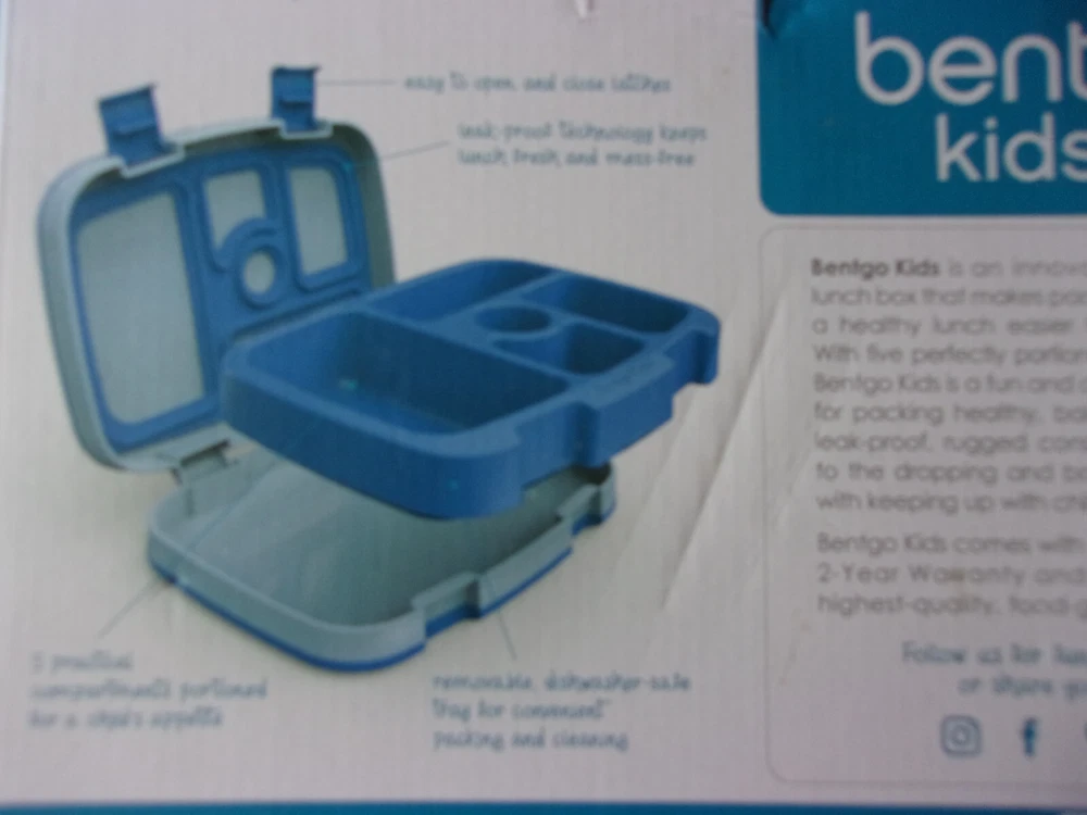 ~~~WELCOME & THANK YOU FOR SHOPPING WITH ME~~~ This offer is for a "Bentgo Kids Lunch Kit", model no. BGOKIDS-B. It has a 5 compartment bento tray that is microwave and dishwasher safe and made of BPA-free materials. It is leakproof and fits neatly into the outer box which has an easy snap open and close lid. Perfect for childrens' school lunches or picnics. This kit is new in the original box. NEXT DAY SHIPPING from our smoke- and pet-free home! ~~~I will recycle shipping/packing materials whenever possible. This saves you money and helps protect our environment~~~ IMPORTANT: I am very selective in my purchases and my intention is to offer only the best of merchandise, whether it is new, used or vintage. I try very hard to find and disclose any defects or imperfections. If I should miss something, please contact me right away. Customer satisfaction is my #1 priority! I use EBay shipping labels which include tracking numbers. My home is smoke free. ~~~A HEARTFELT THANK YOU TO ALL MY LOYAL CUSTOMERS FOR YOUR GREAT EMAILS, FEEDBACK AND CONTINUED PATRONAGE! YOU ARE THE BEST~~~ Check out my other items Be sure to add me to your favorites list !