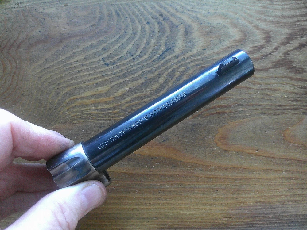 Part Description: Beretta Stampede 1873 SAA Barrel. This is for the 45 colt caliber. This one is in good shape. The bore is shiny. Needs removed from cut section to install. Parts Questions and Requests: Please email me with any questions you might have on my items. This would include fitment, period correct installation, additional pictures, etc. I would love to help you in any which way I can! Shipping time/Combined Shipping: I strive to ship as fast as possible and I constantly receive excellent feedback for my fast shipping. Most items ship same day and always within 24 hours. I will combine shipping on multiple parts purchases. This often can save considerable shipping funds. Please wait until you are done bidding and then email for a combined shipping invoice. International Shipping: No International Shipping! I will only ship to US addresses. Safety: Please be certain that all vintage parts are installed correctly and safely. We recommend a visual inspection and installation by a qualified gunsmith to assure utmost safety. Please bid with confidence and check my feedback. I always strive to be fair and honest in my auctions! Good luck bidding and thanks for viewing my auction!