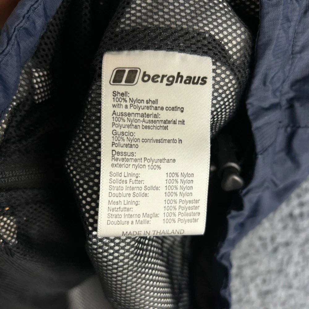Outer Shell Material: Nylon Type: Jacket Size Type: Regular Performance/Activity: Walking Department: Men Brand: Berghaus Style: Rain Coat Lining Material: Nylon Jacket/Coat Length: Mid-Length Fabric Type: Canvas Season: Autumn, Spring, Winter Size: L Colour: Blue Occasion: Casual Closure: Zip Accents: Logo Features: Hooded Theme: Outdoor