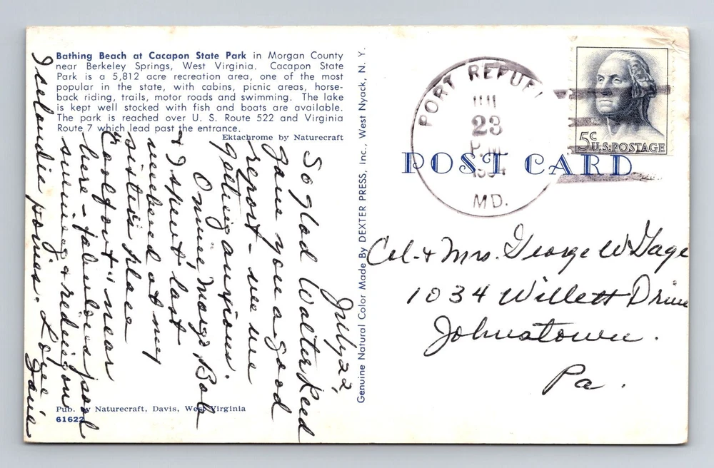 Berkeley Springs WV-West Virginia, Beach, Cacapon State Park, Vintage Postcard