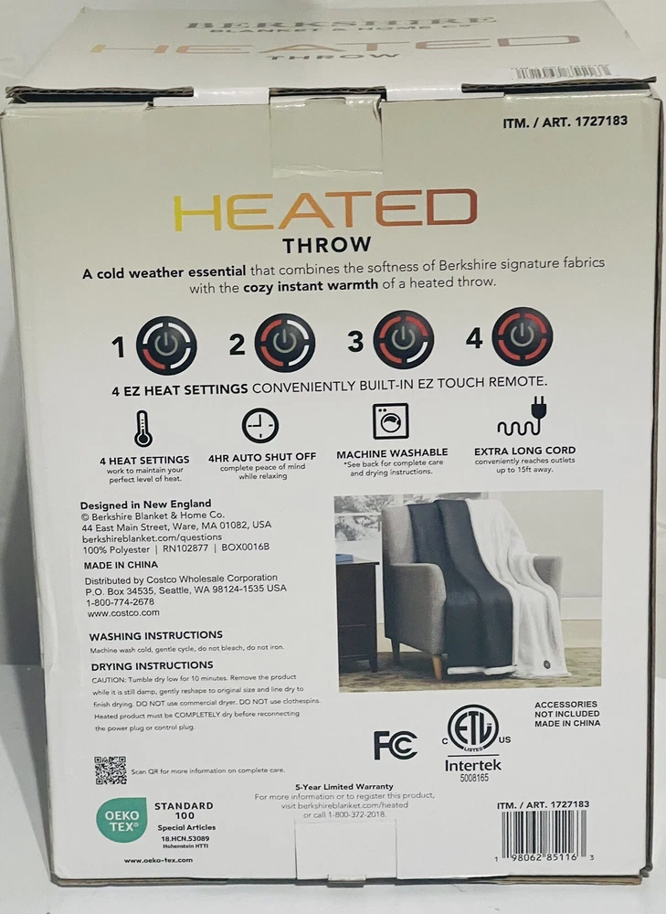 Berkshire Heated Luxe Faux Fur Throw 50" X 60", Gray. Condition is Pre-owned. free shipping NOTE: LISTED AS PRE-OWNED BECAUSE ITS CUSTOMER RETURN FROM COSTCO - (HEATING NOT TESTED) FREE SHIPPING Indulge in luxurious comfort with this Berkshire Heated Luxe Faux Fur Throw. Measuring 50\" x 60\", it's the perfect size for snuggling up in bed or on the couch. The soft and cozy faux fur material is complemented by the heated feature, providing a warm and inviting sensation. The gray color adds a touch of sophistication to any room, making it a great addition to your bedding collection. The blanket is made by Berkshire, a trusted brand in the industry. This blanket is perfect for those who want to add a touch of glam to their home decor.