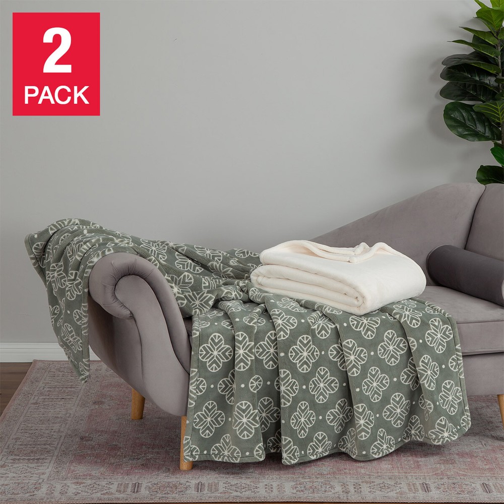 These PrimaLush throw 2 packs from Berkshire Blanket & Home Co., include one printed and one solid throw in coordinating colors to add style and dimension to your space. The luxuriously soft PrimaLush has a velvety sheen that’s super cozy and suitable for every season. Includes: Gray = 1 printed plaid, 1 solid Features: Dense soft plush 1” foldover hem 500 GSM Made in: China Dimensions: 60” x 70” (152cm x 178cm) each Material: 100% Polyester Care Instructions: Machine wash cold separately on gentle cycle Use non-chlorine bleach when needed Tumble dry, no heat Air or line dry Do not iron 2-pack Includes One Printed & One Solid Throw Machine Washable for Easy Care 100% Polyester