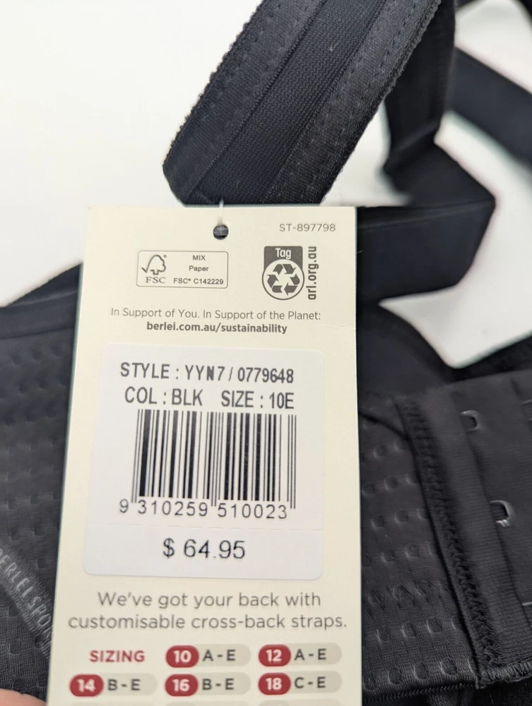 The Berlei Electrify Mesh Underwire Non-Contour Sports Bra in Black is a must-have for active women with a cup size of E and size 10E. Made from durable nylon material, this underwired sports bra provides maximum support and comfort during workouts. Featuring a sleek design, machine washable care instructions, and the renowned Berlei brand, this bra is perfect for those who value style and functionality in their activewear collection.