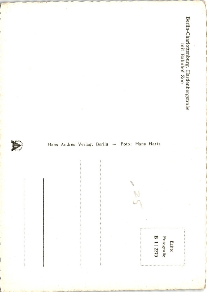 Berlin-Charlottenburg, Hardenbergstraße, Bahnhof Zoo, Hans Andres Ver Postcard