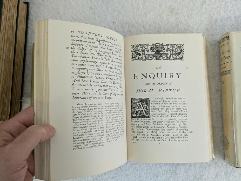 Bernard Mandeville THE FABLE OF THE BEES 2 Vol. Set 1966 Oxford University Press Later Printing In very good condition. Dust jackets protected by a removable mylar sleeve. Vol. 2 DJ is torn. Please examine photos for details. Condition: We strive to describe and photograph the condition of every item as accurately as possible. Photos are of the actual item that is being sold. Please examine the photos carefully for any condition details and possible flaws. Best Offers: Items are available for offers after being listed for 30 days. We consider all offers in relation to current market values. We try to respond almost immediately to most offers. Most of our counteroffers are firm but we are open to bargaining. Shipping for US Customers: We combine shipping. All of our orders are packed carefully to prevent damage during shipment. We ship most of our items within 24 hours. Shipping for International Customers: All international orders are shipped via Ebay's Global Shipping Program. Contact Us: We are available 7 days a week and are happy to answer any questions you may have. Attention Sellers - Get Templates Image Hosting, Scheduling at Auctiva.com.