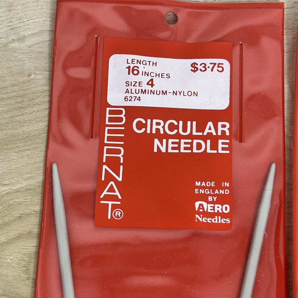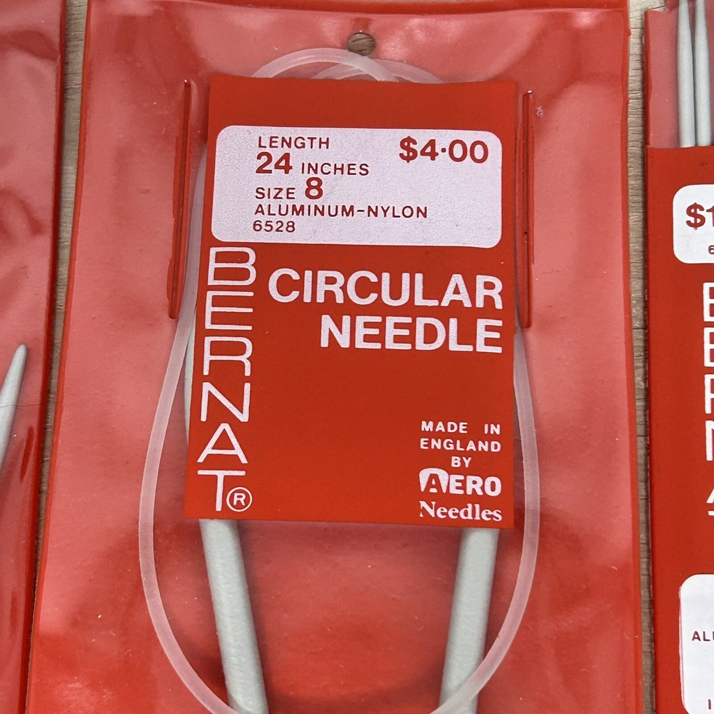 Lot of 4 Bernat aluminum nylon knitting needles. Various lengths and sizes. 2 circular, 1 single pointed and 1 double pointed.