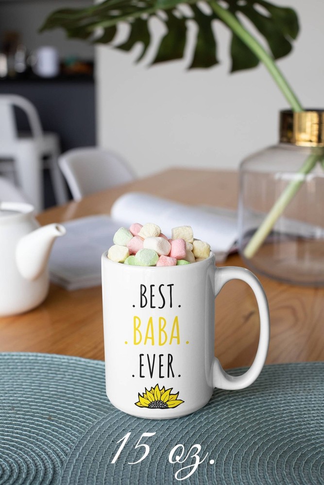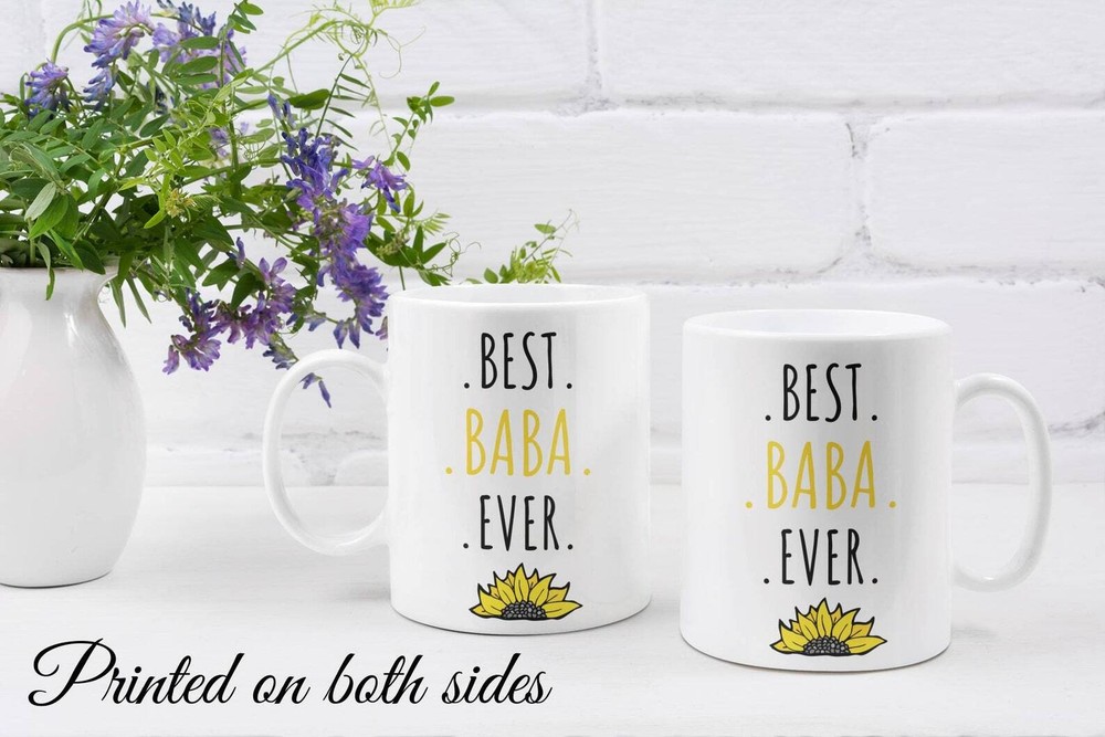 Best Baba Ever Mug Gift 11 Or 15 Oz. Product Details.. This high quality 11oz. ceramic white mug has a premium hard coat that provides crisp and vibrant color reproduction sure to last for years. Perfect for all hot & cold beverages. The highest quality printing possible is used. It will never fade no matter how many times you wash it. Material: 100% Ceramic. Print both sides. Dishwasher and Microwave Safe. High Gloss + Premium White Finish. Printed in the U.S.A. Personalized & Custom. We support personalized and custom mug to add custom, when placing an order, you can add notes to the "order note" in shipping address section. Also you can contact us directly via message. Shipping Info. Ready to ship in 1 to 2 business days, All products are made-to-order and proudly printed in the United States. Shipped by USPS and DHL, You will receive your order in 5-7 days. Replace & Refund. All products are defective during shipping broken, chipped will be replaced free of charge. You are not satisfied with the product, we will refund 100% money to you. If any other issues arise, please do not hesitate to message, we would be more than happy to assist you.