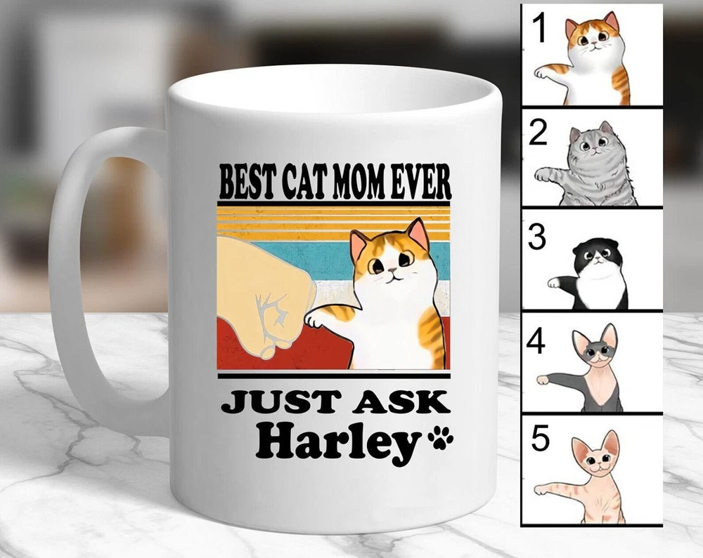 Best Cat Mom Mug Cat Mom Gift Birthday Gift Cat Mom Cat Owner Personalized Gift Product Details.. This high quality 11oz. ceramic white mug has a premium hard coat that provides crisp and vibrant color reproduction sure to last for years. Perfect for all hot & cold beverages. The highest quality printing possible is used. It will never fade no matter how many times you wash it. Material: 100% Ceramic. Print both sides. Dishwasher and Microwave Safe. High Gloss + Premium White Finish. Printed in the U.S.A. Personalized & Custom. We support personalized and custom mug to add custom, when placing an order, you can add notes to the "order note" in shipping address section. Also you can contact us directly via message. Shipping Info. Ready to ship in 1 to 2 business days, All products are made-to-order and proudly printed in the United States. Shipped by USPS and DHL, You will receive your order in 5-7 days. Replace & Refund. All products are defective during shipping broken, chipped will be replaced free of charge. You are not satisfied with the product, we will refund 100% money to you. If any other issues arise, please do not hesitate to message, we would be more than happy to assist you.