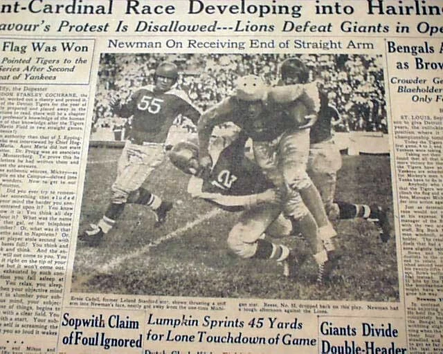 Best DETROIT LIONS Very 1st NFL Football Game Franchise History 1934 Newspaper Offered is an original, collectible newspaper (NOT a copy/reproduction): THE DETROIT FREE PRESS, Sept. 24, 1934 * Detroit Lions very 1st football game * NFL - National Football League * In a Detroit publication (very rare) The front page of the sport's section (pg. 13) has a four column heading: "Lions Defeat Giants in Opener, 9-0" with subheads and related photo. (see images) Also includes stats and lineups. First report coverage continues on page 20 with lineups. Some spine wear causes some text loss here. A related photo is at the top of page 18. Great to have this this Detroit publication. I suspect this to be an extremely rare item because their was really no reason to save it at the time. Twenty pages, some heavy margin wear and chipping, especially along the right margin but doesn't affect the Lions reporting, should be handled with care. wikipedia notes: The 1934 Detroit Lions season was the fifth in franchise history and the first in Detroit; the franchise had previously played as the Portsmouth Spartans in Portsmouth, Ohio, a city with a population of approximately 40,000. Under head coach Potsy Clark, the Lions won their first ten games (of which the first seven were shutouts) then lost three straight in an eight-day span to end the season at 10–3. They finished in second place in the NFL Western Division, three games behind the undefeated Chicago Bears. Please Note: All of our offerings are 100% authentic! We do not offer reprints or reproductions of any kind. They are guaranteed to be original! Links to Archival Storage Options & Certificates of Authenticity Are Below! Historical reports may be beautiful or ugly, but they are always informative. While we rejoice in the beautiful (heroic, discovery, amazing feats, etc.), we at History's Newsstand also offer "the ugly" for we are determined to learn from the wrongs of the past - understanding, to do so, we must be willing to look these wrongs directly in the face and shout "NO MORE!". It is for this reason many Black Americans collect historic slave ads, Jews collect reports regarding the Holocaust, women collect coverage of the Women's Suffrage Movement, etc.. If you find any to be offensive, we agree! Hopefully this is an indication we are moving in the right direction. Domestic Shipping Policy... For this specific item, A U.S. winner pays $10.00 S&H. If multiple items are purchased and paid for simultaneously , the S&H will be calculated by using the highest item's S&H as the base cost , and then adding a small amount for each additional newspaper. The per-item additional cost for newspapers, folders, portfolios, and presentation cases vary according to size and weight. All U.S. orders include in-house insurance at no additional cost to the buyer and include delivery confirmation. All orders include tracking & delivery confirmation. Orders ship within 24 business hours of receiving payment. Some small items may be shipped 1st Class. We will still provide tracking and insure them at our expense. Combined Shipping Notice If the automated eBay checkout process does not properly combine shipping, we will refund overages automatically. If you prefer, contact us prior to payment to obtain a revised invoice. International S&H Policy... If the S&H to your location is not given, international buyers/winners should contact us for an invoice which includes S&H . Import duties, taxes, VAT. etc. are not included in our quoted S&H. These charges are the buyer’s responsibility. Note: We will not falsify customs declarations or mark an item as a "gift" in order to avoid customs fees. If insurance is desired, be in touch for a quote. All insured orders are subject to customs, duties, & taxes for the amount insured and are the buyer's responsibility. International purchasers are encouraged to take advantage of our combined shipping policy to lower the cost per item S&H. If you wish to take advantage of combined shipping, please do not pay for any until you are finished - and then contact us for a combined invoice. If You Are Unhappy With Your Order We make every effort to provide the best possible buying experience. If we fall short of your expectations in any way, please contact us so we can try to make things right for you. Archival Storage... ...is available for an additional $15.00, plus an appropriate adjustment to S&H (see above Shipping Policy). If desired, purchase this directly (through eBay) at: archival storage folder . Again, to insure you will receive the appropriately sized folder for your item, please select the $15.00 folder option. Certificate of Authenticity... A certificate of authenticity is also available for an additional $3.00, which includes both the issue date and title, and certifies, by Timothy Hughes Rare & Early Newspapers, the issue to be authentic & original. If desired, purchase this directly (through eBay) at: certificate of authenticity . About Us... Contact Information... We have been both collectors and dealers in rare newspapers since 1975, serve as consultants to multiple museums, and are members of both the Ephemera Society of America and the American Antiquarian Society. Bid & Buy with confidence knowing every item we offer is guaranteed to be authentic. Timothy Hughes Rare Newspapers P.O. Box 3636 Williamsport, PA 17701-8636 Hours: M-F, 7:30-4:00 EST View our additional ebay offerings "...desiring to conduct ourselves honorably in all things." Heb. 13:18 In an effort to honor eBay's policies and our loyal customers who watch our listings, we do not end auction items early. We hope you understand! " Were it left to me to decide whether we should have a government without newspapers, or newspapers without a government, I should not hesitate a moment to prefer the latter." Thomas Jefferson
