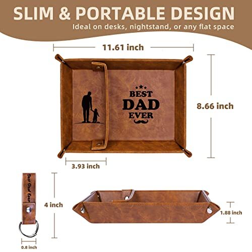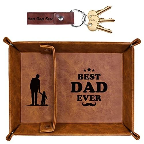 Mainul Extension Gifts for Dad Fathers Day, Best Dad Ever PU Leather Valet Tray and Keychain, Unique Dad Birthday Gifts from Daughter Son Kids, New Dad Gifts for Men Father Husband from Wife BEST GIFTS FOR DAD- Looking for a sweet gift for dad? This meaningful leather valet tray for men will be cool gifts for dad who wants nothing. Measuring 11.61*8.66*1.88 inches (L*W*H) , it's the ideal size on a drawer, desk nightstand, dresser, entryway shelf storage, w dad can easily drop his things when he comes home every day. BEST DAD EVER GIFTS - Engraved with BEST DAD EVER texts and artwork captured the spirit of fatherhood, making this a heartfelt and sentimental reminder of your love that dad will cherish forever. Especially if you struggle with words or don't live close to your dad, our mens nightstand tray dad birthday gift will help bridge the gap and let your dad know that he's always on your mind. USEFUL DAD GIFTS FOR MEN - Make your dad's life easier with this multipurpose tray. As a decorative tray, it is also a functional leather tray organizer gift for dad who have everything. It helps to store his important daily essentials such as keys, wallet, glasses, coins, watches and more, whether in the living room, bedroom or office. Your dad will love having this mens catchall tray by his side. THOUGHTFUL DESIGN - Crafted with resistant PU leather materials and premium snaps, high-quality valet tray organizer for men is great in keeping tray shape and resistant enough for a long lasting. Dual compartments design enables dad to efficiently to store items avoid cluttering and keep glasses scratch-free. UNIQUE DAD GIFTS CHOICE- This leather tray is perfect and unique for dad gift from daughter son kids wife, birthday gifts for dad, new dad gifts for husband from wife, presents for dad, Fathers Day, Thanksgiving gifts, Xmas stocking stuffers and more. INSTALLATION TIPS - The provided instructions streamline the assembly process. First, flex the tray by bending it upwards and downwards once or twice help you to easily snap buttons on the corners. Please ensure that the divider's shorter end is at the bottom, then snap the buttons to firmly attach it. Free Shipping We offer FREE shipping on all orders! We ship within 5 business days, usually sooner. We use shipping services like: ePacket, USPS, China Registered Air Mail Post for faster shipping: UPS, FedEx, DHL (at extra cost) Please contact us for more details about shipping services that we provide. Return You can return a product for up to 30 or 60 days (Mentioned in the product listing) from the date you purchased it. Any product you return must be in the same condition you received it and in the original packaging. Please keep the receipt. Payment We only accept payment from eBay managed payments. Please pay as soon as possible after winning an auction, as that will allow us to post your item to you sooner! PS: We only ship orders after the payment complete. Customer satisfaction is very important to us. If you have any problem with your order, please contact us and we will do our best to make you satisfied. Please visit our eBay store to check out other items for sale! Thank you for your visite to our store.