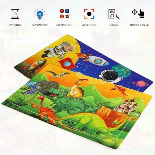 Free eBay listing template designed by dewiso.com Wooden Puzzles Toys for Kids Ages 4-6, Set of 3 Packs with 60-Piece Wood Jigsaw Puzzles, Dinosaur, Animal and Space Theme. Ideal Gifts for Boys and Girls 3 4 5 6 7 8 Years Old FREE AND FAST SHIPPING! Educational and Entertaining: Engage young minds with our Wooden Puzzles, specifically designed for kids ages 4-6. Each puzzle pack contains 60 durable wood pieces, offering hours of educational fun as children explore three captivating themes: Dinosaurs, Animals, and Space. Premium Quality Construction: Crafted from high-quality wood, our puzzles are built to last. The sturdy construction ensures that pieces fit together smoothly, providing a satisfying tactile experience while enhancing fine motor skills and hand-eye coordination. Versatile Learning Tools: These puzzles go beyond mere entertainment. They serve as valuable learning tools, promoting cognitive development and problem-solving abilities. As children assemble intricate scenes of dinosaurs roaming the earth, animals in their habitats, or astronauts exploring the cosmos, they're actively learning and expanding their knowledge base. Ideal for Growing Minds: Our puzzles cater to a wide age range, making them perfect for kids aged 3 to 8 years old. With varying difficulty levels and themes, they grow with your child, offering new challenges and opportunities for learning as they develop and mature. Perfect Gifts for All Occasions: Whether for birthdays, holidays, or just because, our Wooden Puzzles make thoughtful and engaging gifts for boys and girls alike. Spark their imagination and encourage creativity with these timeless toys that provide endless entertainment and educational benefits. Product We offer a 30-Day Return Policy on items which you are not completely satisfied with. You have the option for a full-refund or an exchange of the item. No returns are available on items shipped outside of the US . Shipping We offer Free Shipping to the US and ship within 2 business days of payment, usually sooner. We use UPS express shipping. That's why your products are usually delivered within 3 days . Contact We try our very best to make sure every customer is completely satisfied. If there's a problem , message us! We're happy to help. 24/7 live chat available.
