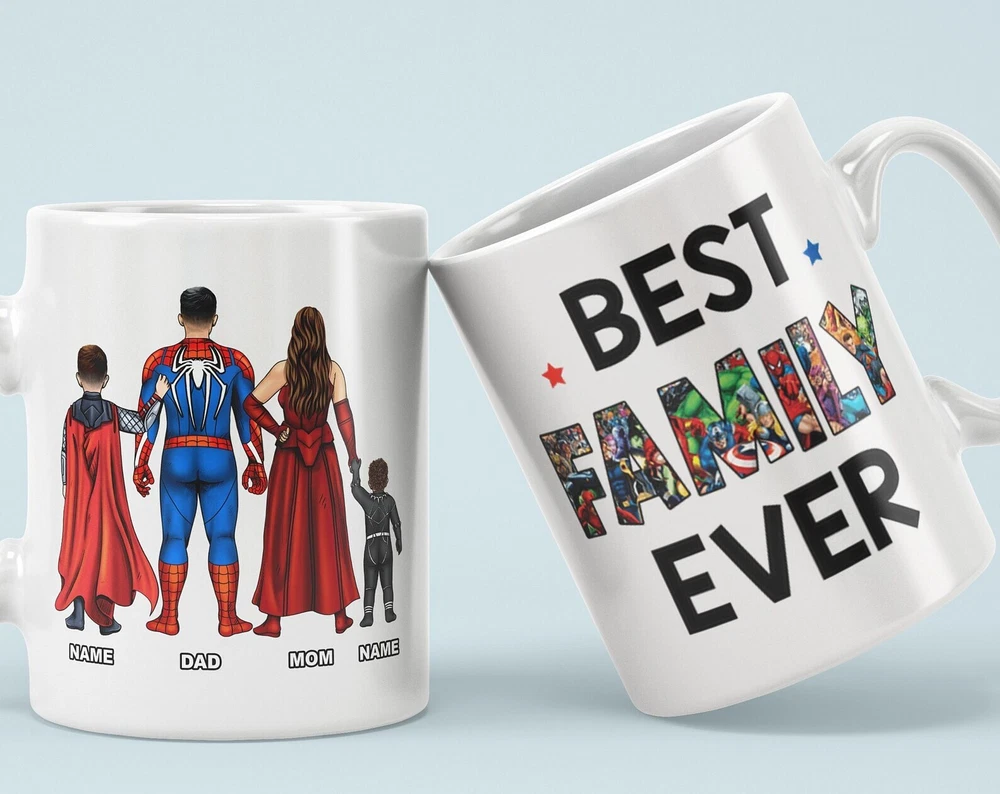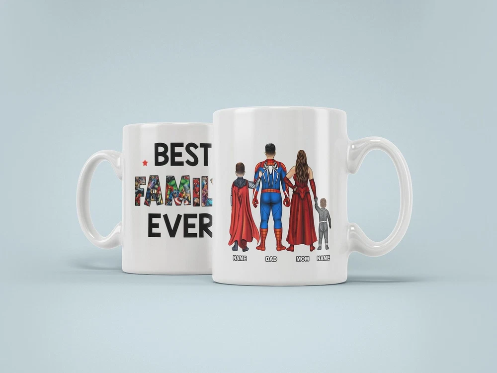 Best Family Ever Mugs Personalized Father And Kids Coffee Mug Fathers Day Gift Birthday Gift For Dad Custom Family Superhero Dad Mugs Product Details.. This high quality 11oz. ceramic white mug has a premium hard coat that provides crisp and vibrant color reproduction sure to last for years. Perfect for all hot & cold beverages. The highest quality printing possible is used. It will never fade no matter how many times you wash it. Material: 100% Ceramic. Print both sides. Dishwasher and Microwave Safe. High Gloss + Premium White Finish. Printed in the U.S.A. Personalized & Custom. We support personalized and custom mug to add custom, when placing an order, you can add notes to the "order note" in shipping address section. Also you can contact us directly via message. Shipping Info. Ready to ship in 1 to 2 business days, All products are made-to-order and proudly printed in the United States. Shipped by USPS and DHL, You will receive your order in 5-7 days. Replace & Refund. All products are defective during shipping broken, chipped will be replaced free of charge. You are not satisfied with the product, we will refund 100% money to you. If any other issues arise, please do not hesitate to message, we would be more than happy to assist you.
