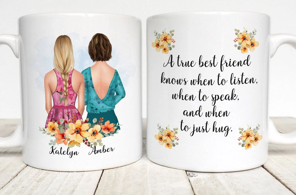 Best Friend Gift Personalized Mug For Best Friend True Best Friend Bestie Bff Product Details.. This high quality 11oz. ceramic white mug has a premium hard coat that provides crisp and vibrant color reproduction sure to last for years. Perfect for all hot & cold beverages. The highest quality printing possible is used. It will never fade no matter how many times you wash it. Material: 100% Ceramic. Print both sides. Dishwasher and Microwave Safe. High Gloss + Premium White Finish. Printed in the U.S.A. Personalized & Custom. We support personalized and custom mug to add custom, when placing an order, you can add notes to the "order note" in shipping address section. Also you can contact us directly via message. Shipping Info. Ready to ship in 1 to 2 business days, All products are made-to-order and proudly printed in the United States. Shipped by USPS and DHL, You will receive your order in 5-7 days. Replace & Refund. All products are defective during shipping broken, chipped will be replaced free of charge. You are not satisfied with the product, we will refund 100% money to you. If any other issues arise, please do not hesitate to message, we would be more than happy to assist you.