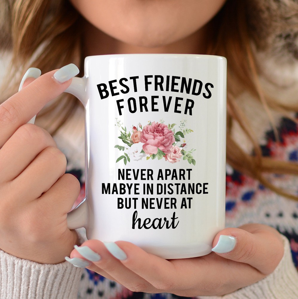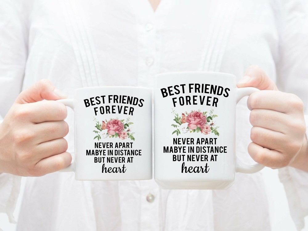 Coffee Mug Best Friends Forever Never Apart Long Distance Gift Custom State To Product Details.. This high quality 11oz. ceramic white mug has a premium hard coat that provides crisp and vibrant color reproduction sure to last for years. Perfect for all hot & cold beverages. The highest quality printing possible is used. It will never fade no matter how many times you wash it. Material: 100% Ceramic. Print both sides. Dishwasher and Microwave Safe. High Gloss + Premium White Finish. Printed in the U.S.A. Personalized & Custom. We support personalized and custom mug to add custom, when placing an order, you can add notes to the "order note" in shipping address section. Also you can contact us directly via message. Shipping Info. Ready to ship in 1 to 2 business days, All products are made-to-order and proudly printed in the United States. Shipped by USPS and DHL, You will receive your order in 5-7 days. Replace & Refund. All products are defective during shipping broken, chipped will be replaced free of charge. You are not satisfied with the product, we will refund 100% money to you. If any other issues arise, please do not hesitate to message, we would be more than happy to assist you.