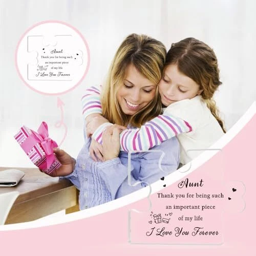 Return Policy Fast Delivery Trusted seller Aunt Gifts Auntie Gift Ideas Gifts For Aunt Best Aunt Ever Gifts Aunt Valentines Day Gifts For Aunt From Niece Puzzle Acrylic Decorations Auntie Birthday Gifts From Nephew Aunt Birthday Gifts For Aunt Product Description Acrylic Gifts: With a Puzzle-shaped design, unique and exquisite design, the pattern does not fade easily. Printed with warm words - Aunt, Thank you for being such an important piece of my life. I love you forever. Whether it's a birthday, anniversary or festivals, thank you, this is an unforgettable gift. Size information: The size of this puzzle-shaped acrylic plaque decoration is 3.9*3.9*3.9*0.59 inches (10*10*1.5 cm). The right size allows you to place them in many places, such as bedside, coffee table, nightstand, coffee table, desk, bookshelf, dresser, dining table and so on. They can be placed as decorative items in living room, bedroom, study or chest of drawers. They can add a splash of colour to home and office decor. Gifts Acrylic Plaque: If you are looking for a gift that fully expresses your thoughts and appreciation, then check out this acrylic ornament! It is perfect as a gift for your aunt, best auntie gifts, aunt gifts for birthday, aunt birthday gifts from niece, birthday gifts for auntie from niece, happy birthday auntie gifts, aunt mothers day gifts, mothers day gifts for aunt from niece, unique aunt birthday acrylic puzzle-shaped plaque desk decorations. High quality material:Made of high quality acrylic, smooth edges, sturdy and not easy to break, not easy to scratch the skin. The acrylic decoration is transparent and glossy, the printing is clear, the text and pattern on it is colourful, not easy to turn yellow and can be reused. Perfect for some important holidays or life nodes as a gift choice. Such as birthday, back to school,graduation, Thanksgiving,Christmas, Happy New Year,leaving a job, promotion, retirement, new job and so on. Widely used: acrylic decorations are beautiful and delicate, perfect for Christmas gifts, Valentine's Day gifts, birthday gifts, Easter gifts, Thanksgiving gifts, Father's Day gifts, Halloween gifts, wedding gifts, graduation gifts, Mother's Day gifts, retirement gifts, New Year's gifts, homecoming gifts, Women's Day gifts, Women's Day gifts, bridal shower gifts, house warming gifts new home, baby shower gifts, bosses day gifts, anniversary gifts, teacher's day gifts and thank you gifts. Shipping Returns Payment Shipping Shipping is FREE to all addresses other than APO/PO boxes in the lower 48 states. All our stock ships from US-based warehouses. Shipped via USPS or UPS (depending on location and package weight) Unless stated otherwise, all orders will ship within 24-72 hours of your payment being processed. Check our feedback to see the great reviews of FAST shipping we offer. Returns Seller does not accept returns Payment We currently accept payment via eBay managed payments only. Once payment is cleared, we will dispatch your shipment within 1-3 business days. Please refer to the "Shipping" tab for more information regarding shipping speed to your destination.