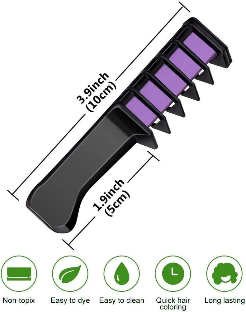 Hair Chalk Comb LAWOHO 6 Colors Temporary Hair Dye Marker Gifts for Girls Kids Adults for Halloween Christmas Birthday Party, Cosplay Description EASY TO USE & WASH OUT - Hair colour comb works beautifully on All Natural Hair Colors. You can change your hair in a few minutes, just use it comb your hair smoothly. Easy washes out with ordinary shampoo and water. NON-TOXIC & SAFE - These hair chalks are made of environmental friendly material, and it's not PERMANENT! It will not harm your hair. These hair color comb is safe for children teen aged 3+. Be assured to use, but don't eat GREAT IDEA - Great birthday gifts idea for girls and boys age 3 4 5 6 7 8 9 10+ years old. It's often used for Halloween Cosplay makeup, Valentines Day, Easter, Christmas, Mom's day present for girls women. USE ADVICE-These hair chalk work great on the light hair like gray and blond hair,simply wet and comb hair before apply the hair chalk ,comb your hair from top to bottom with hair chalk and dry hair with hair dryer. For Dark and Blown Hair,we need to repeat to comb hair from top to bottom several times and use hairspray to set color before dry hair.Kindly understand there could be some slight difference in the color tone of the pics and the actual item.And the chalk might be a little sticky. Seller fullfilled Deliverd at your door step 5 to 6 business days