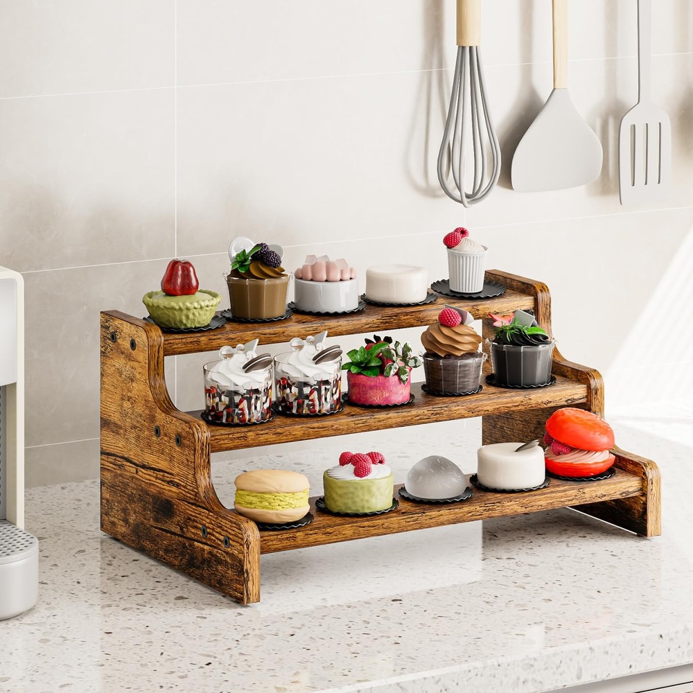 Bring rustic charm and functional organization to your kitchen with this 3-Tier Spice Rack. Crafted from natural wood, this step shelf offers a stylish and practical solution for storing your spices, seasonings, and baking supplies. Measuring 13.8 inches (35 cm) in height, it provides ample space to neatly arrange your favorite herbs, spice jars, and cooking essentials within easy reach. The tiered design allows for efficient use of counter or cabinet space, keeping your kitchen tidy and clutter-free. With its warm, rustic appeal and sturdy construction, this spice rack seamlessly blends with various decor styles, making it a versatile addition to your kitchen, pantry, or even living spaces like the dining room or entryway. Elevate your cooking experience and add a touch of organization with this charming and functional 3-Tier Spice Rack. VERSATILE STORAGE: This 3-tier wooden step shelf provides ample storage space for spice bottles, jars, seasonings, and baking supplies in your kitchen pantry or cabinet. SPACE-SAVING DESIGN: Measuring 13.8 inches wide, this compact spice rack organizer fits neatly on countertops or shelves, maximizing your kitchen storage. STURDY CONSTRUCTION: Crafted from high-quality wood, this durable spice holder is built to last and can withstand daily use. STYLISH ACCENT: With its rustic brown finish, this step shelf adds a touch of warmth and charm to your kitchen décor. MULTI-PURPOSE USE: Versatile design allows you to use this organizer in various rooms like the dining room, living room, bedroom, entryway, or bathroom.