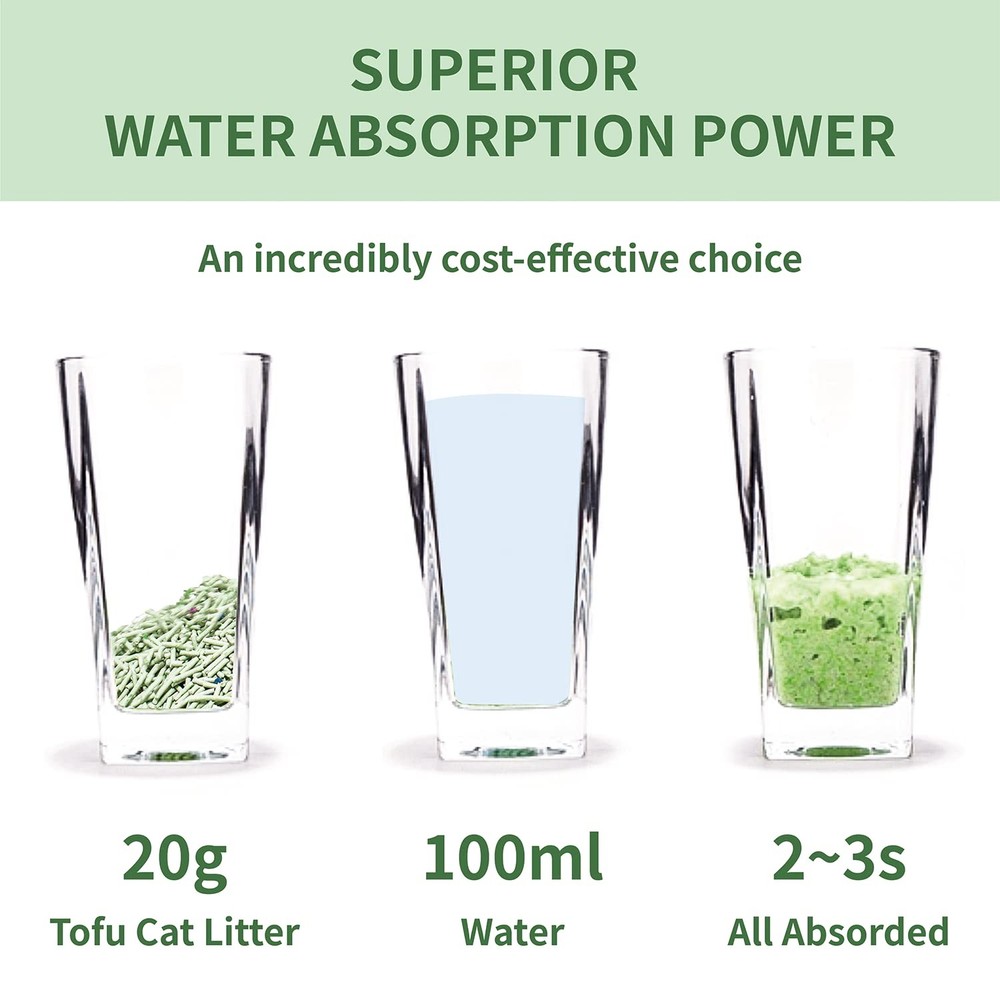 Pellets of tofu cat litter can clump together quickly and don't stick to the cat's paws. Forming solid clumps that are easy to remove without crumbling. Low-tracking cat litter that has been filtered to ensure that there is no longer a dust cloud when it is added to the litter box, safeguarding your cats [Clumping cat litter] Pellets of tofu cat litter can clum together quickly and don't stick to the cat's paws. Forming solid clumps that are easy to remove without crumbling [99.9% Dust-Free] Low-tracking cat litter that has been filtered to ensure that there is no longer a dust cloud when it is added to the litter box, safeguarding your cats [Exceptional Odor Control] Green tea flavoring in tofu cat litter helps to control odors, so you won't smell bad when you come inside after a long day or when you wake up [Easy to Flush] You can find it very convenient to flush natural tofu cat litter down the toilet rather tossing it in the trash [Lightweight Cat Litter] For one ot more cats, the cat litter's superior absorption capabilities make it a great option. There is 5.5lb in every pack