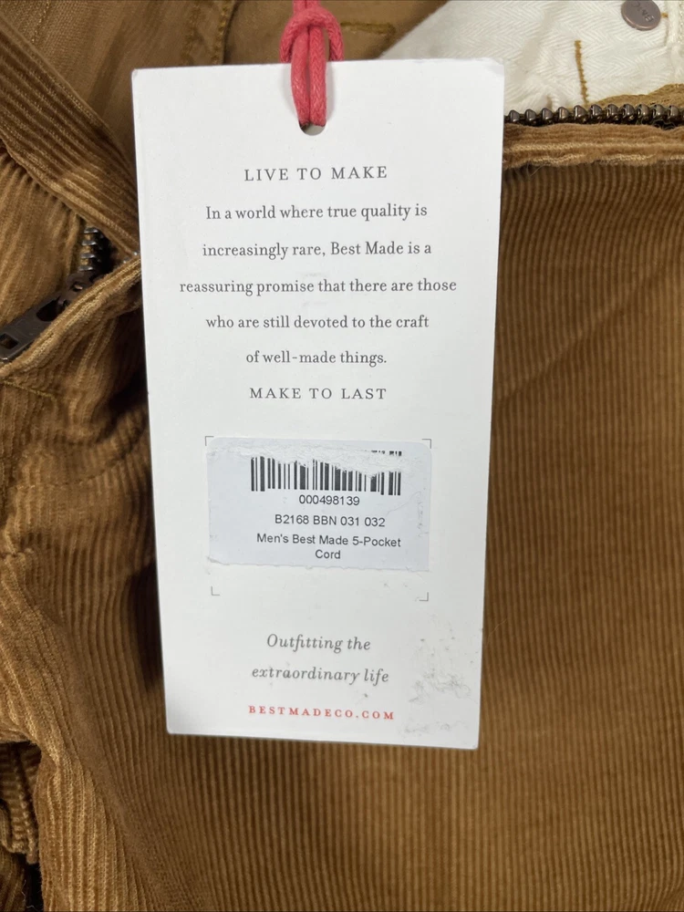 Best Made Corduroy Pants Men's 31x32* TAG Brown 5-Pocket Straight 100% Cotton Tag size is: 31 x 32 Actual measures are: ~30 x 31.5 See photos for measurements. Condition is used. Good used condition with typical wear. No losses to note. See photos for condition and detail. Please look carefully at all photos. The photos are an important part of the description. If you have questions, please ask. Returns are accepted within 30 days of purchase. The item must be returned in exactly the same condition as received. Items will be inspected, serial numbers checked, etc. Shipping fees are not refundable.