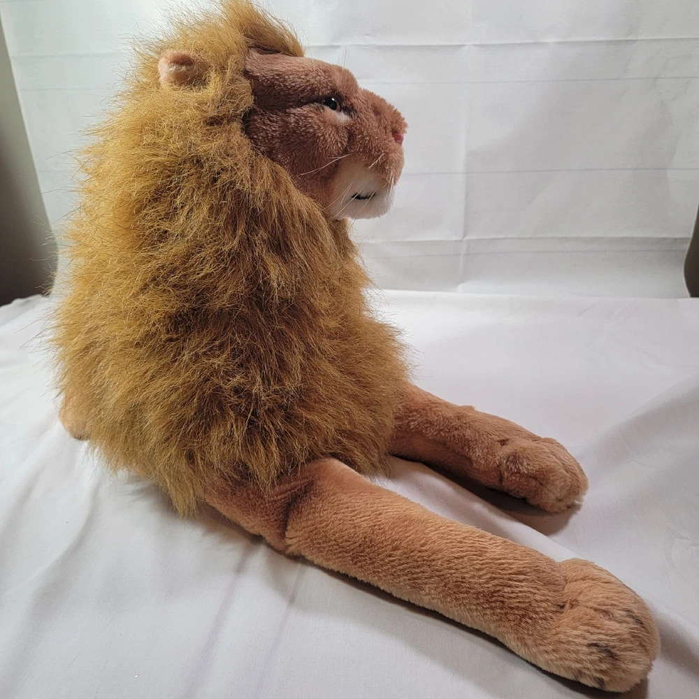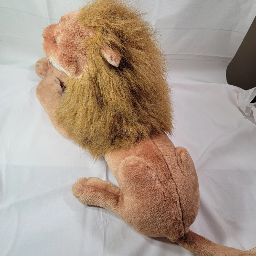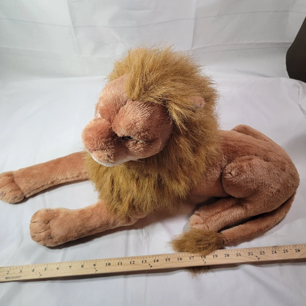 This jumbo-sized vintage plush lion from Best Made Toys Limited is an impressive addition to any stuffed animal collection. With its realistic design, the lion is perfect for jungle-themed play or as a decorative piece. Measuring at 27 inches, it is categorized as a large sized toy, making it suitable as a cuddly companion for children of all ages. The tan color of the lion's fur adds to its natural appearance, while the character family of 'Jungle' adds to the animal's adventurous and wild persona. This stuffed lion is perfect for any occasion and is sure to make a great gift for both children and adults alike.