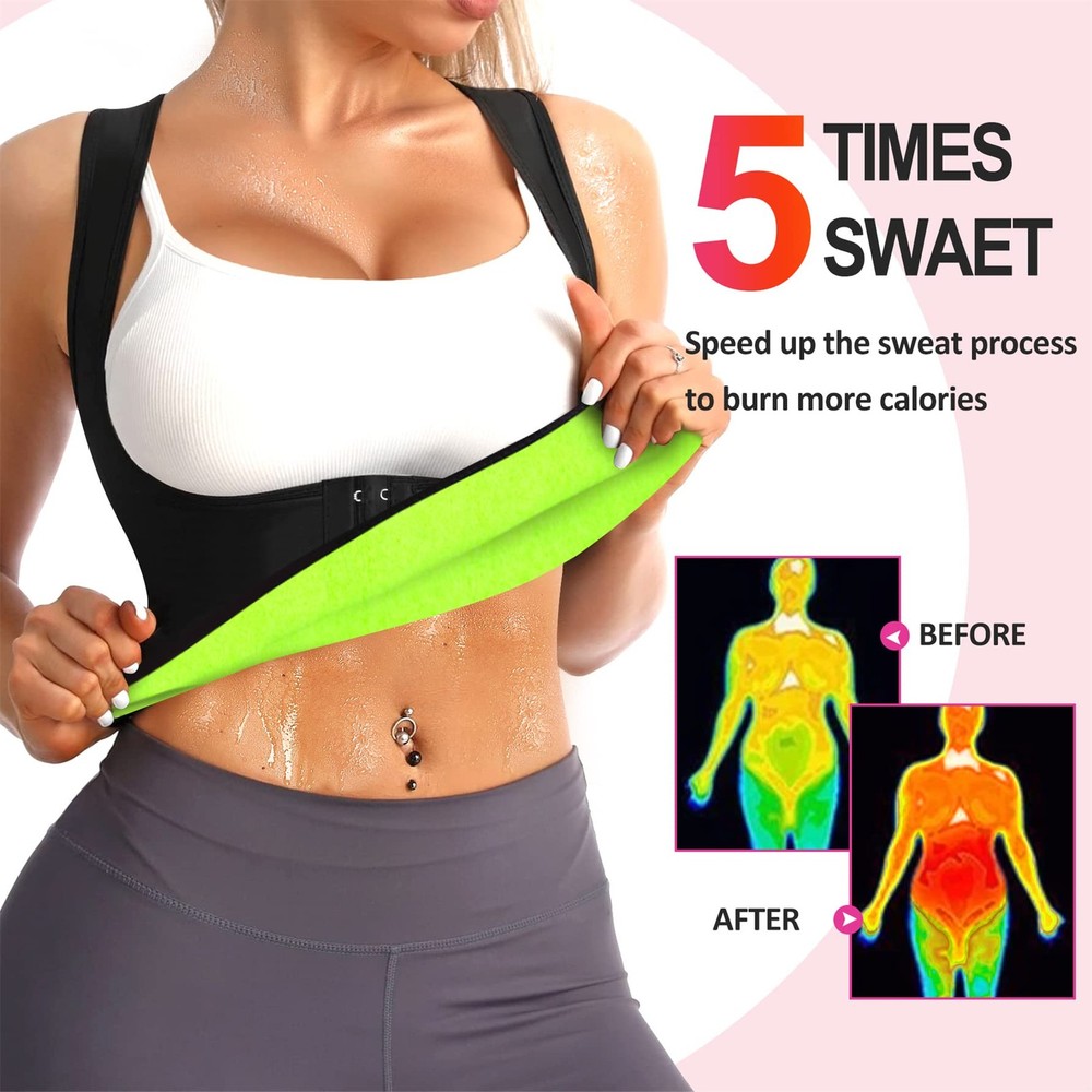 Do you want to lose weight quickly? Do you want your belly fat exercise into muscle? Do you want to own a perfect heathy figure? We totally understand the struggle to lose weight or fitness,you have to take too much time to do much exercise,but the effect is not ideal. Waist Cincher is designed to maximize the effectiveness of your workout and fat burn ,make you get twice the result with half the effort. Functions: Provides instant abdominal compression for tummy control. Increased thermal activity, Mobilizes fat cells, Stimulates perspiration, Midsection control. Ideal for aerobics and workout, accelerate weight loss by burning tummy fat . Lightweight, Comfortable,Stretchy fabric molds to your body for easy movement,skin-fit. Improve your overall well-being, help you correct posture. Can be used for yoga, belly abdomen corset etc . Wearing Occasions: Fat Burner Shapewear is perfect for yoga, running, weight loss or belly recover, any occasions you want to be slimmer. Ideal gift for best friend, waist training lovers. womens vest tops as ideal gifts for daughters, wife, and friends for Anniversary Day,Valentines Day and Birthday,Mother's day,or just as a surprise to remind that special one how much you care! Package Include: 1 x Womens Sweat Suit The tank top trainer is made of Neoprene for workout exercise, accelerating weight loss.The neoprene fabric will increase core temperature and keep your body warm,burn extra tummy fat by heating up your abdomen,also increase calories burner for a more effective workout,reducing your abdomen and waist. Vest weight with 4 hooks allows you to adjust the compression you need. This body trainer with underbust design which help the breasts push up,effective firm control of armpits and back flabby fat. Weight loss top also helps to support your lower back, wide straps will take the pressure off of your shoulders and instantly correct your posture. Double layer high compression design,the inner layer work as tuck belt flatten your stomach, trim your tummy waist.Outer layer compresses bulges on your abdomen to create smooth without rolling up,enhances your workout and shape your waist to be more slimmer,can be worn under everyday clothes. Maximize shape a hourglass waist with this waist cincher top ,acts like a compression binder around the waist to offer abdominal compression and lumbar support,improve posture,relief waist pain,protect spine. Exercise weights vest is great for reshaping postpartum recovery get your body back to its former post childbirth,create the best posture for healing. Wearing tips: The neoprene smell of the weight loss sauna suit is normal,it would be easy gone after a few times hand washes in cold water with a soft detergent , hang dry to maintain shape.