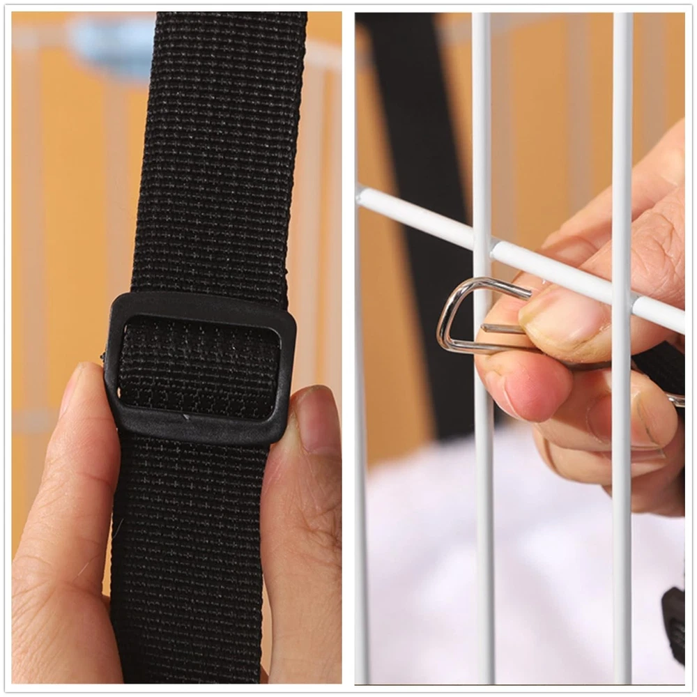 2-Pack Cat Hammock Cat Hanging Bed for Cage Kennel Chair 【2-PACK CAT HAMMOCK】Measures 14" Diameter x 5" Depth, perfect for cats up to 15LBS. 【ADJUSTABLE NYLON STRAPS】Mini carabiner clips for clipping with a maximum length of 10.2 inches, choice of lengths to suit your needs. 【MULTIPLE SCENARIO APPLICATION】Easy to hang at the top of cage, tree, tower, or under a chair with straps. 【COMFORTABLE & STABLE】The hammock with metal frame is sure to make your kitty feel more comfortable and stable while taking snap. 【HEALTHY MATERIAL AND STURDY】Features soft plush on one side and cotton canvas on the other, for maximum comfort, durable, heavy duty and water resistant.