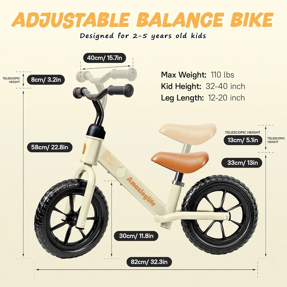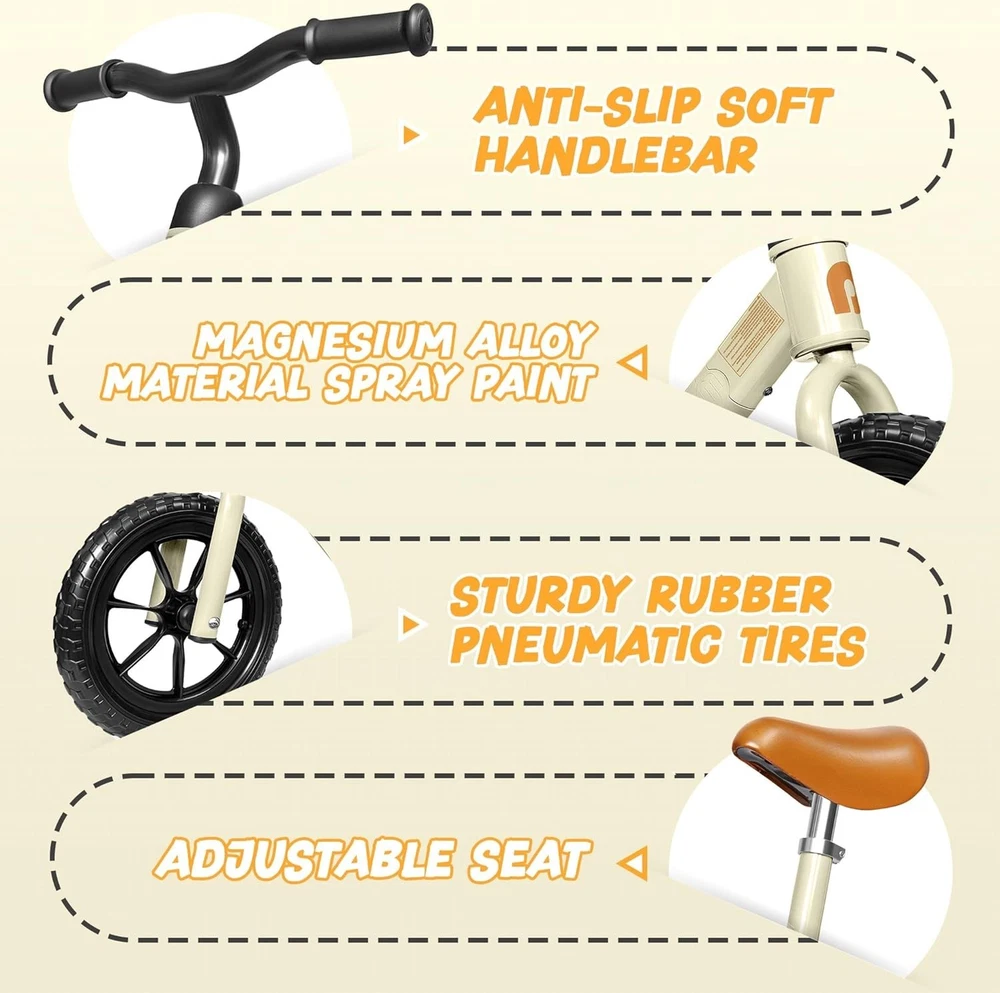 Perfect Birthday Gift: Toddler Balance Bike for Ages 2-5, 110 lbs Limit ‹ › ‹ › ‹ › ‹ › ‹ › ‹ › ‹ › ‹ › Toddler Balance Bike Perfect Birthday Gift: Designed for ages 2-5, this toddler balance bike is not just a gift; it’s an opportunity for your little one to practice balance, build confidence, and enhance their motor skills. Features: - Constructed with a robust carbon steel frame capable of supporting up to 110 lbs. - Non-slip handles and a soft, plush seat provide maximum comfort for your child during their riding adventures. - Unique pedal-less design allows toddlers to focus solely on balance, featuring a 135° steering limit for safer turning. - All-terrain tires offer an exciting riding experience both indoors and outdoors, encouraging exploration. - Effortlessly assembled in minutes with the included installation tools. - Height-adjustable seat and handlebars to grow with your child from age 2 to 5. Benefits: Encourages physical activity and enhances coordination skills. Boosts self-esteem as children learn to ride independently. Durable materials ensure longevity, withstanding the of time and play. Safe riding experience for your most precious cargo. Why choose our Toddler Balance Bike? This balance bike is more than just a toy; it’s a tool for growth and development. The ergonomically designed structure promotes safe, enjoyable riding that builds critical skills in your child. Watch them thrive as they gain confidence and enjoy hours of fun! Your search for the perfect birthday gift ends here—give your child the joy of independence with our Toddler Balance Bike! Shipping Free & Fast Shipping - We offer free shipping to most of the USA with a normal delivery time of 3-7 days. However, due to the current situation, additional delivery time (up to 3 weeks) may be required for some items. Alternative Carriers - We may use alternative carriers (e.g. USPS, FedEx, UPS, etc.) to ensure your package arrives safely and on time. Due to the use of multiple carriers, we are unable to provide a tracking number automatically. Handling Time - Orders are processed and shipped within 1-2 business days of receiving cleared payment. Shipping Restrictions - Shipping to Alaska, Hawaii, Puerto Rico, Guam, and other US territories may incur shipping charges or delivery restrictions. Please contact us before ordering, or your order can be refunded/cancelled. State Restrictions - There may be restrictions based on your state of purchase. For example, certain items may not be shipped to California due to state regulations. Contact for Tracking Updates - If you require tracking updates or have any concerns about the delivery of your order, please feel free to contact us, and we will be happy to assist you. Return 30-Day Hassle-Free Returns - We want you to be completely satisfied with your purchase. If you are not, you can return the item within 30 days of receiving it for a full refund or exchange. Easy Return Process - To start a return, simply contact us and we will provide you with a prepaid return shipping label and detailed instructions. Restocking Fee - There are no restocking fees for returns. However, the buyer is responsible for return shipping costs if the return is not due to a seller's error. Refund Processing Time - Refunds will be processed within 5 business days of receiving the returned item in its condition. Payment We accept all major credit cards, PayPal, and Apple Pay for your convenience. Your payment information is secure and encrypted to ensure a safe and seamless transaction. Please complete your payment within 3 days of purchase to avoid any delays in shipping. Feedback Your feedback is extremely important to us. We strive to provide the best products and customer service possible. If you are satisfied with your purchase, please take a moment to leave us a positive review. If you have any concerns or issues with your order, please contact us before leaving negative feedback. We are committed to resolving any problems and ensuring your satisfaction. Contact Us If you have any questions or concerns, please feel free to out to our customer support team. You can contact us through the eBay messaging system. We are available Monday to Friday, 9:00 am to 5:00 pm EST, and we will do our best to respond to your inquiry within 24 hours. Buy it now and enjoy a pleasant shopping experience! Unit Quantity: 1 Material: Aluminum,Carbon Steel Features: Adjustable Seat,Adjustable Handlebar,135° Steering Limit,No Pedals,All-terrain Tyres,Non-slip Handles,Soft Seat Bike Type: Balance Bike Frame Size: Medium Wheel Size: 10 in Suspension Type: No Suspension Color: Beige Number of Speeds: 1 Speed Brake Type: No Brakes Handlebar Type: Standard Tire Type: All-terrain Shifter Style: None Gear Change Mechanism: None Item Weight: 10 lb