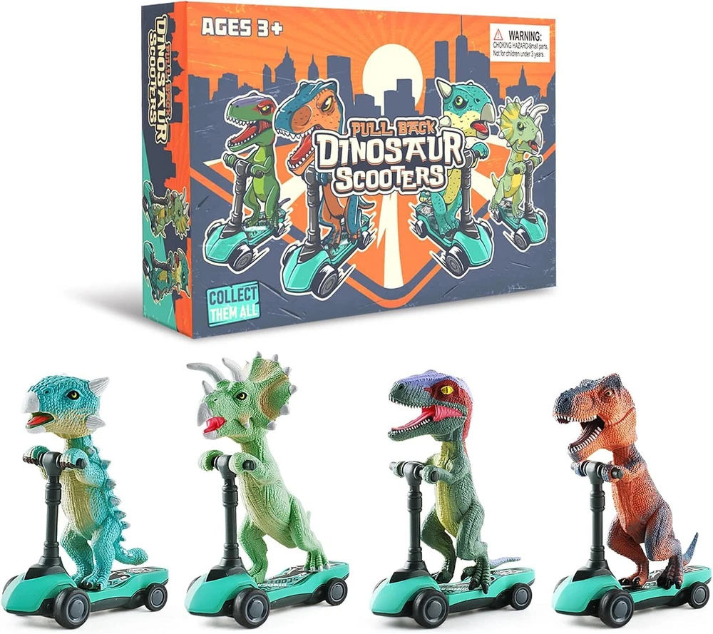 Free eBay listing template designed by dewiso.com DINOBROS Dinosaur Scooter Toys Pull Back Cars Mini Finger Kick Scooters Boy Toy Age 3 4 5 6, Dino Gift Sets for Kids 4-Pack FREE AND FAST SHIPPING! FUNNY DINOSAUR SCOOTER TOYS-You will receive 4 pieces of finger dinosaur scooter toys(including T-Rex, Triceratops, Velociraptor, Ankylosaurus). This toy creatively combines the dinosaur figures with the scooter, with the dinosaur fixed on the scooter. Great boy toys for kids age 3 4 5 6 7. PULL BACK CARS-DINOBROS dinosaur scooter toys are designs with pull-back car function, just pull it back and let go,them it will go forward automatically. 4 rubber wheels design built to provide a smooth and steady ride. MINI SIZE SCOOTER PLAYSET-Each finger dinosaur scooter is designed in small and portable size, measuring approximately 3.54" long, 1.57" wide and 4.33" high with the handle. The small size allows children to take them with them wherever they go. SPECIAL DINO GIFTS FOR KIDS-These mini scooters are not only interesting toys, but also beautiful decorations for bedrooms, desks, bookshelves, and so on. Great gifts for birthdays, Christmas, stocking stuffers,Thanksgiving, holidays and any other occasion for scooter and dinosaur lovers. EDUCATIONAL TOYS-Finger dinosaur scooter playsets stimulate imagination and creativity,playing with these mini scooter figures is conducive to help cultivate hand brain coordination and flexibility. They can also distract your children from electronic devices. Product We offer a 30-Day Return Policy on items which you are not completely satisfied with. You have the option for a full-refund or an exchange of the item. No returns are available on items shipped outside of the US . Shipping We offer Free Shipping to the US and ship within 2 business days of payment, usually sooner. We use UPS express shipping. That's why your products are usually delivered within 3 days . Contact We try our very best to make sure every customer is completely satisfied. If there's a problem , message us! We're happy to help. 24/7 live chat available.