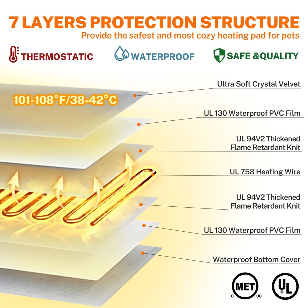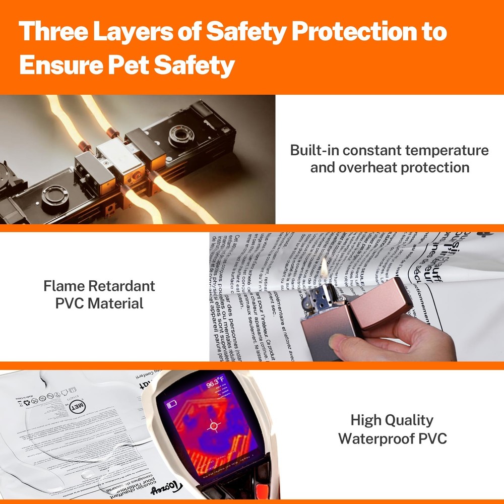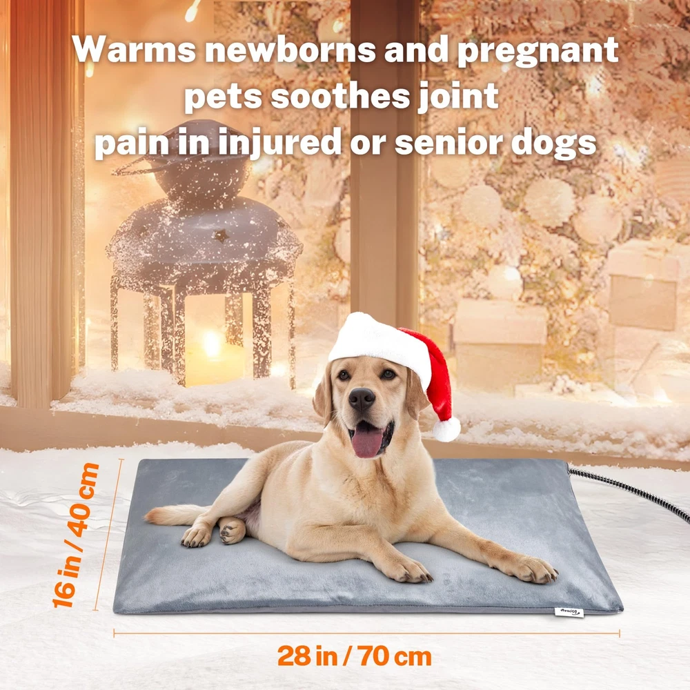 Outdoor Pet Heating Pad, Thermostatic Dog Cat Heating Pad with Chew Resistant Cord, Heated Pet Bed for Dogs Cats, Pet Heated Mat, Suitable for New Born and Older Pets ❤【SAFETY AND SECURE STRUCTURE】Multi-layer protection structure with UL-certified heating wire protects pets from burns. Soft PVC envelope with waterproof and flame retardant function. Built-in intelligent temperature sensor in the pet heating pad to prevent overheating and spontaneous combustion and protect your pet, which is very safe for you and your pet. ❤【THERMOSTATIC & ENERGY EFFICIENT】The outdoor heated dog cat bed has an excellent thermostatic heating induction system that always keeps 100.4℉~107.6℉ (38℃~42℃), so your pet is always warm and comfortable. And M size is only 50 watts, very energy efficient, no need to worry about wasting too much power. ❤【SUITABLE FOR INDOOR AND OUTDOOR】This outdoor heated pet bed for dogs cats has a waterproof inner pad and a plush cover for a splash-proof effect. And, it also uses a 69 inches extra-long cord with a steel-encased chew guard. So in addition to indoor use, the outdoor pet heating pad is also great for outdoor use, such as in cat houses, dog houses, porches, garages, barns, or other outdoor shelter areas. ❤【UNIQUE DESIGN】Protect pets from chewing wires with dual-resistant cord protection to ensure safety. Ultra-soft, machine-washable cover for comfort and convenience. If the inner pad becomes dirty, you just need to wipe the inner pad with a damp cloth instead of soaking it in water. Pet heating's also designed with an air valve, making this dog heating pad outdoor softer and more comfortable. ❤【GOOD FOR PET'S HEALTH】dog cat heating pad can warm newborn pets, and pregnant pets and ease joint pressure and pain of older, arthritic animals. It has applications beyond the winter months. ❤【SATISFIED DOG CAT HEATING PAD】The dog heating pad indoor outdoor is perfect for your pet and can be used indoors and outdoors, making it a great choice no matter what time of year. If you have any questions about the product, please feel free to , we will always be at your service. ❤【NOTE】Unfold heating pad and keep it flat to use. Do not fold it during use. Also need to pay attention to whether the dog cat heated bed is pressed into a small corner by the pet's body, if so, you need to unfold it in time. It is also important to note that the heated pet bed must be covered with a plush cover before use!