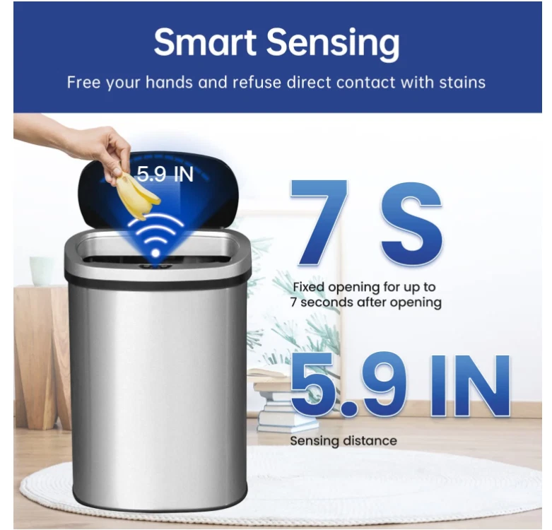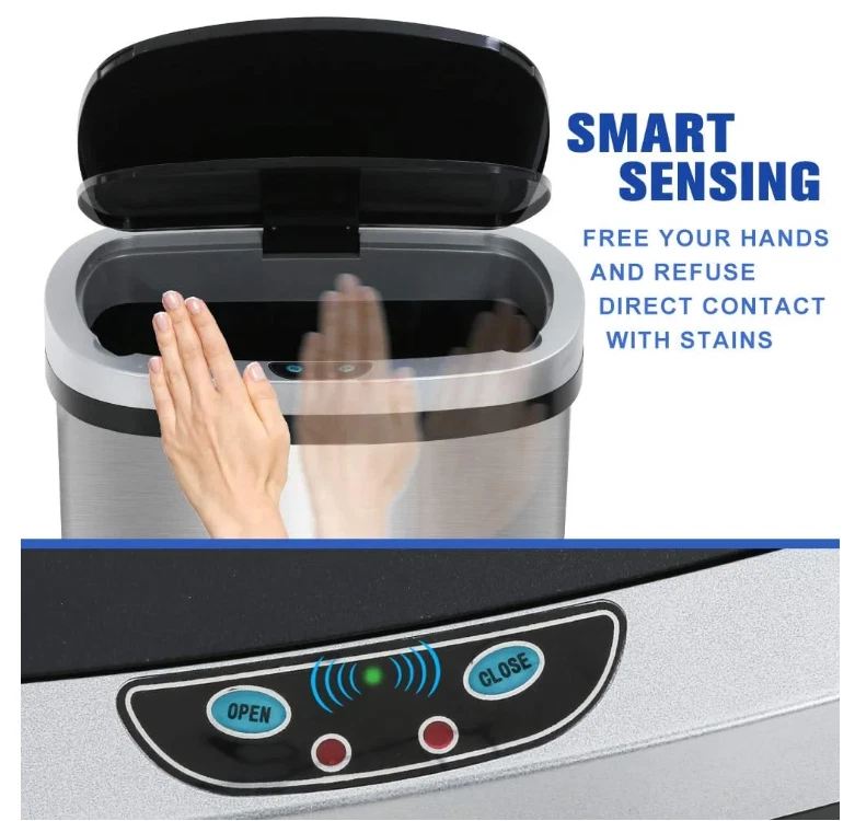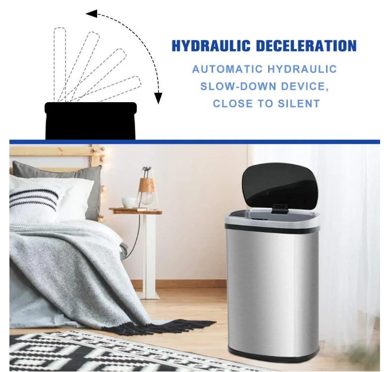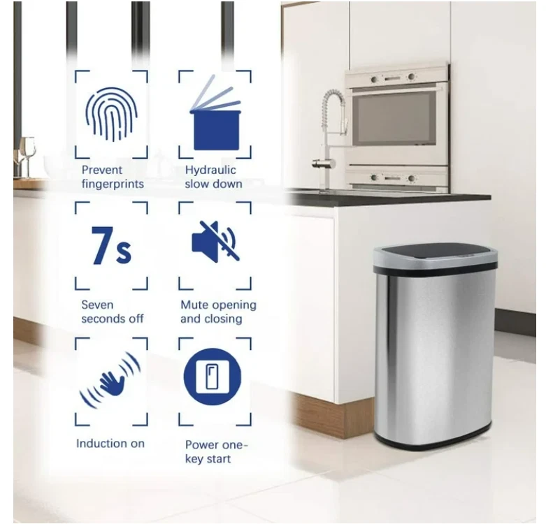 This BestOffice 13-Gallon touchless trash can is a perfect trash box. With its sensible talents and sophisticated design, this garbage can makes an excellent improve for any kitchen decor. With the equipped infrared technology, this kitchen bin help keep cooking and eating regions easy and smelling sparkling. 6" above the infrared panel, the lid will open mechanically Press the manual button OPEN on the manipulate panel, the lid will open all the time, press CLOSE, then it's going to close. Recommended Location: indoor. 『STRONG &FASHIONABLE APPEARANCE 』Our BestOffice kitchen trash can is made of high quality stainless steel with a stainless steel wire drawing surface. The oval body with a sloping lid makes the garbage can look even more cool and beautiful. Buying our stainless steel trash can is a great deal for you. Recommended Location: indoor. 『MUTE DESIGN』Conventional garbage can in use will make a lot of noise, how our kitchen trash can use slow down technology, open and close will not make a lot of noise, you can rest assured that you can use, do not worry about disturbing the rest of the family. So putting stainless steel trash can in the corner of your bedroom will make a good choice. 『13 GALLON ULTRA-LARGE CAPACITY』13 gallons can absolutely meet your daily use, in the kitchen table next to a kitchen trash can, you will be more convenient to deal with kitchen waste. The regular 13-gallon garbage bag in the supermarket can be used in our stainless steel trash can, and it's kind of you to use a bigger bag. The lid of the garbage can is removable, it’s convenient for you to put in and take out the garbage bag. 『EASY TO CLEAN & ISOLATED SMELL 』Our kitchen trash can is treated with stainless steel wire drawing, which makes it very convenient to clean up the stainless steel trash can. The dirt on the surface of the garbage can be easily removed with only a rag. If you don't want the whole house to smell like you don't like, you need to make sure that the lid of the bathroom trash can is always closed, and good sealing makes this possible. 『SUITABLE FOR VARIOUS PLACES』 Our stainless steel trash can be used in all places where we can use it. It's big, beautiful and the price is right. Why not to buy one ? The kitchen, the bedroom, the living room, the study, the activity room, even in your kid's cabin, I think it's all right to put one of our kitchen trash can .Quality assurance, if garbage can have any quality problems, you can contact us the first time, we will give you a satisfactory answer.