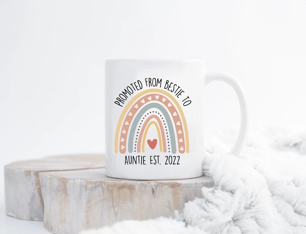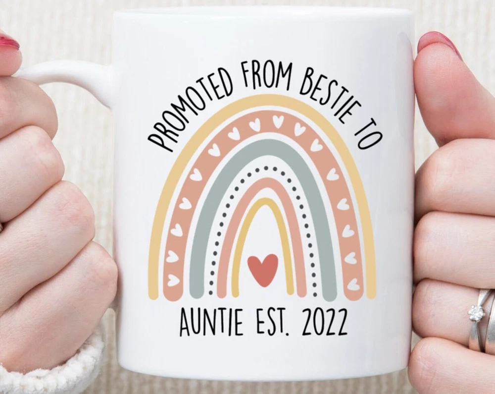 Bestie Promoted To Auntie Pregnancy Announcement Best Friendto Aunt Mug Gift For Product Details.. This high quality 11oz. ceramic white mug has a premium hard coat that provides crisp and vibrant color reproduction sure to last for years. Perfect for all hot & cold beverages. The highest quality printing possible is used. It will never fade no matter how many times you wash it. Material: 100% Ceramic. Print both sides. Dishwasher and Microwave Safe. High Gloss + Premium White Finish. Printed in the U.S.A. Personalized & Custom. We support personalized and custom mug to add custom, when placing an order, you can add notes to the "order note" in shipping address section. Also you can contact us directly via message. Shipping Info. Ready to ship in 1 to 2 business days, All products are made-to-order and proudly printed in the United States. Shipped by USPS and DHL, You will receive your order in 5-7 days. Replace & Refund. All products are defective during shipping broken, chipped will be replaced free of charge. You are not satisfied with the product, we will refund 100% money to you. If any other issues arise, please do not hesitate to message, we would be more than happy to assist you.