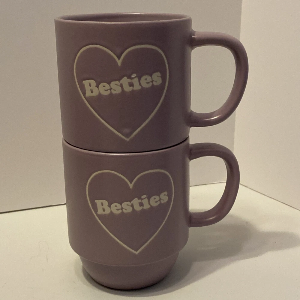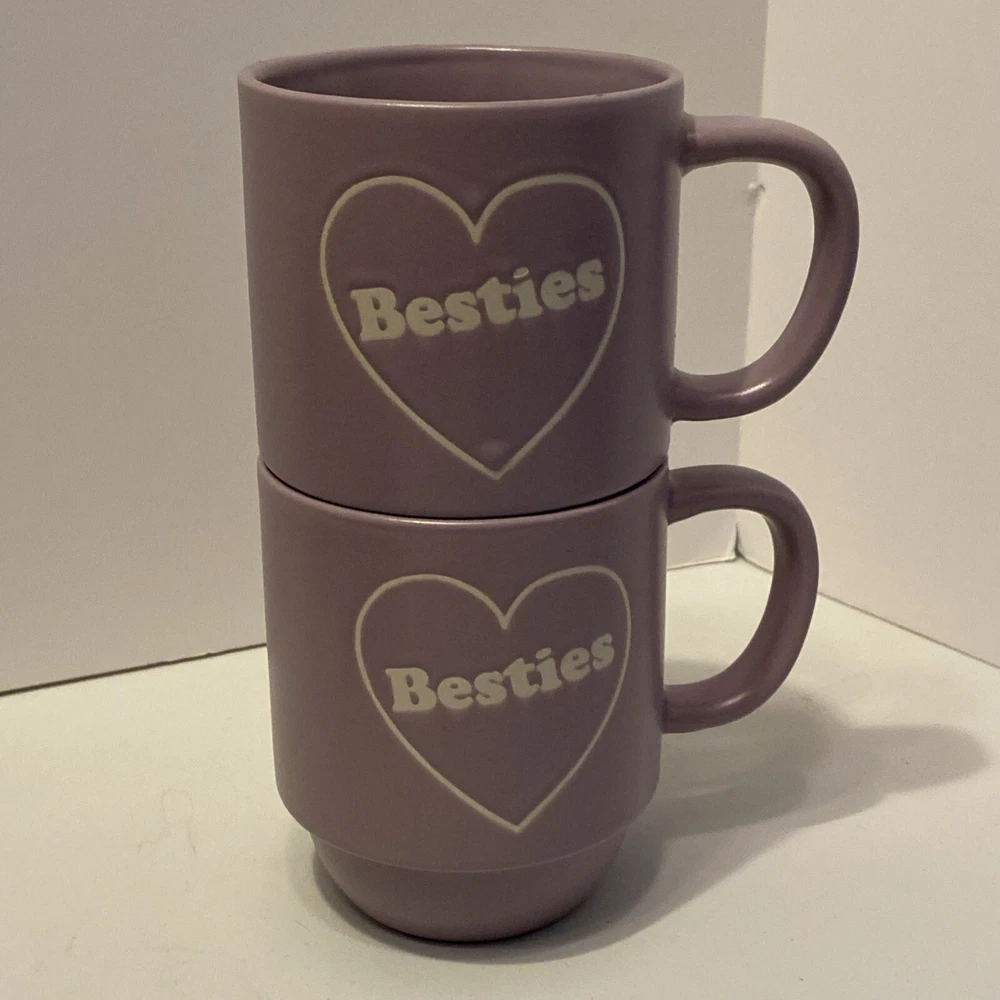Besties Coffee Mug Cup Purple Stoneware Best Friend Set Of Two Stackable