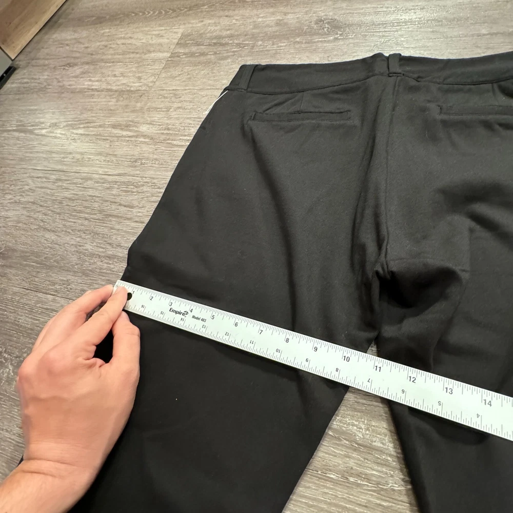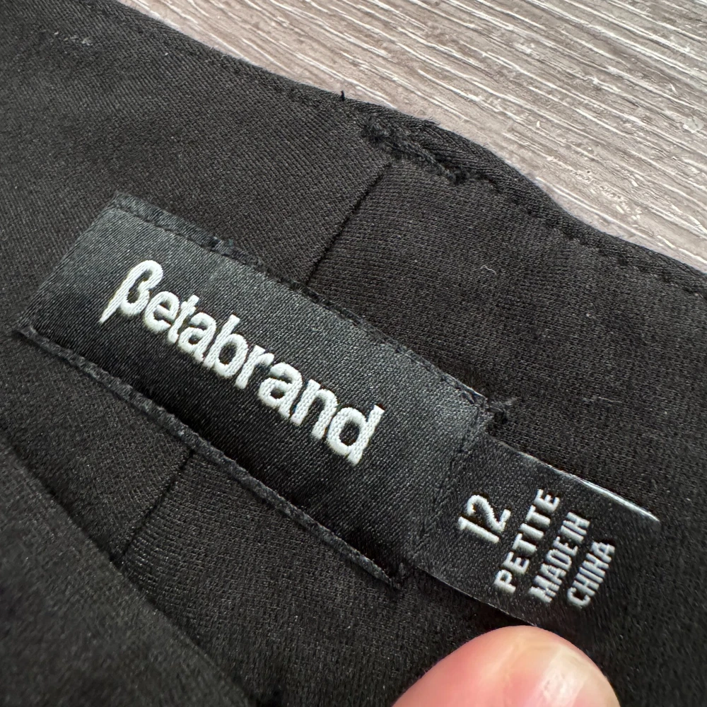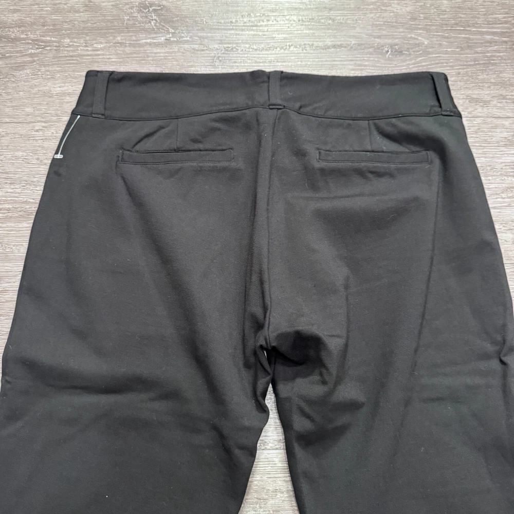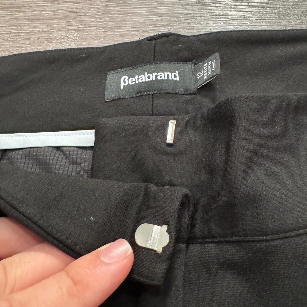 Pattern: Solid Fabric Type: Ponte Department: Women Material: Nylon, Rayon, Spandex Fit: Regular Size: 12 Front Type: Flat Garment Care: Machine Washable Type: Pants Features: Comfort, Pockets, Stretch Size Type: Regular Style: Dress Pants Occasion: Business, Casual, Travel Vintage: No Waist Size: 34 in Closure: Pull On Color: Black Brand: Betabrand Theme: Preppy Leg Style: Straight Inseam: 30 in