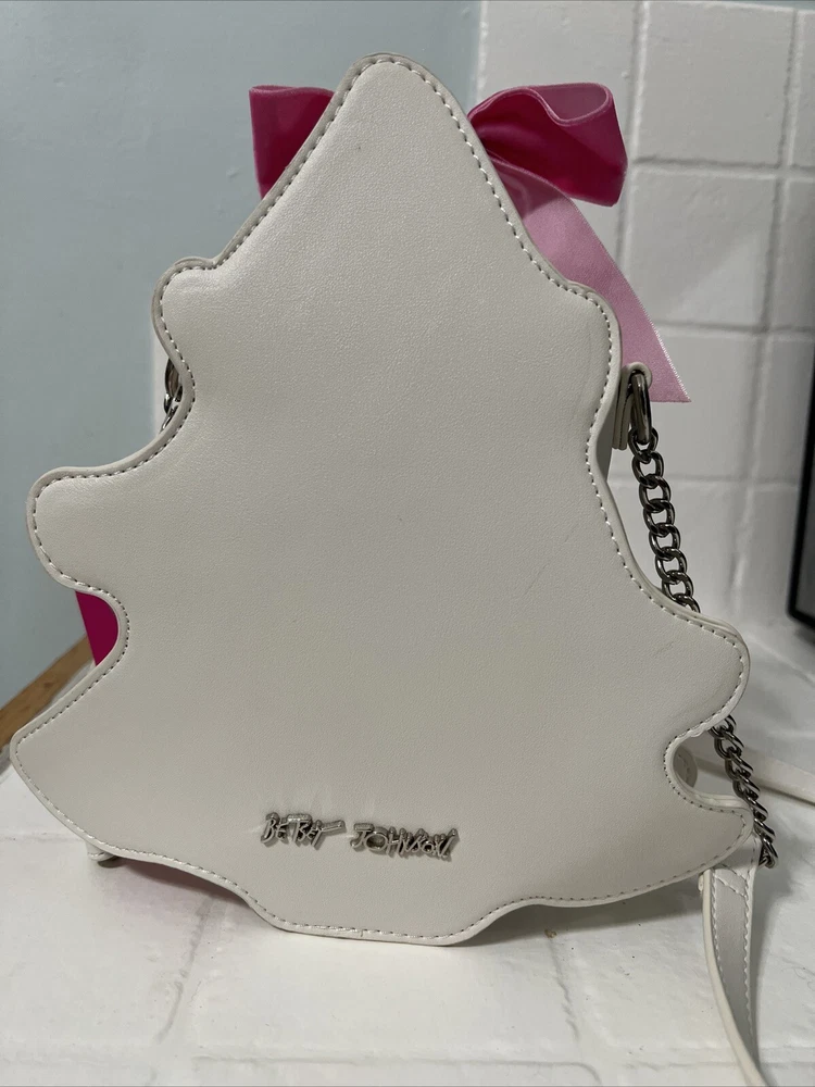 Betsey Johnson Kitsch XO Merry Christmas Tree Coquette Bow Glitter Crossbody Bag. Condition is New with tags. Shipped with USPS Ground Advantage.