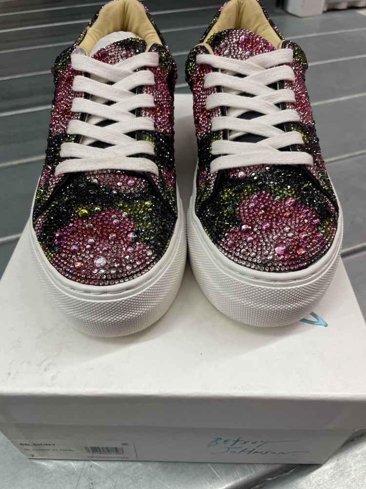 Betsey Johnson Sidney Rhinestone Platform Shoes Womens 7 Floral Sneakers NWB, please see pic for details