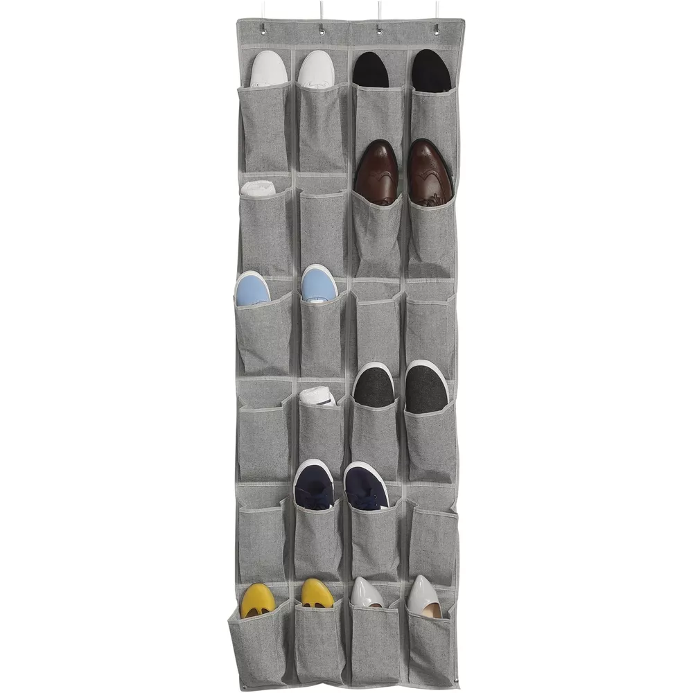 The Better Homes & Gardens 24-Pocket Over the Door Closet Shoe Organizer for adult can help you use virtually any interior door as potential storage space. This durably crafted fabric shoe organizer comes fully assembled and ready to hang on sturdy metal hooks and is perfect for bedroom, closet, and other doors, or can be hung securely off any closet rod. The organizer features 24 fold-out pockets to hold up to 12 pairs of your favorite footwear. The Better Homes & Gardens 24-Pocket Over the Door Closet Shoe Organizer is a great way to keep shoes, socks and other items organized, easily accessible, and off the floor. On Feb 15, 2025 at 00:32:49 PST, seller added the following information: