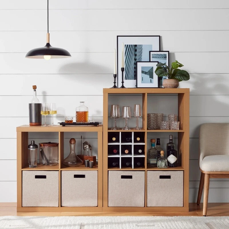 Add function and style to your home with the Better Homes & Gardens 4-Cube Storage Organizer. Available in multiple finishes, including both solid and wood grain options, this cube organizer features four 13" x 15" x 13" compartments in a 2x2 configuration, the perfect size to display books, collectibles, photos, artwork, storage bins and baskets. An open back design makes it easy to manage cords and cables. The top panel of this sturdy bookcase supports up to 100 lbs and each cube space supports up to 30 lbs. Combine it with other Better Homes & Gardens Cube Organizers and Cube Storage Bins (sold separately) to create a complete, customized storage and display system. Easy to assemble, the Better Homes & Gardens 4-Cube Storage Organizer is perfect for your office, living room, den, playroom and more. Features four 13" x 15" x 13" compartments Modern, open back design for easy cord management Compatible with Better Homes & Gardens Cube Storage Bins (sold separately) Top panel can support up to 100 lbs and each cube supports up to 30 lbs Can be combined with other Better Homes & Gardens Cube Storage Organizers (sold separately) Materials: MDF, particle board Easy to assemble with included instructions and video assembly guide (no additional tools required) Finishes available: Textured White (BH61100005302WH), Tobacco Oak (BH61100005302TO), Rustic Gray (BHD036118664015), Light Honey (BH5336278612076), Charcoal (BH5336278612075) and Gray (BHD036118664014) Package size: 34.39" x 8.58" x 18.11" (37.47 lbs) Assembled weight: 31.7 lbs Assembled dimensions: 30.16" W x 15.35" D x 29.84" H