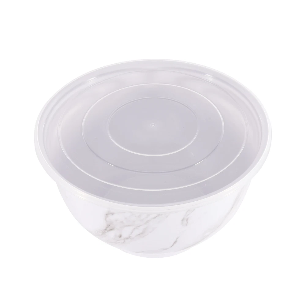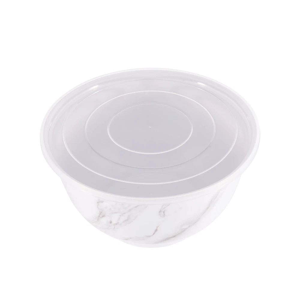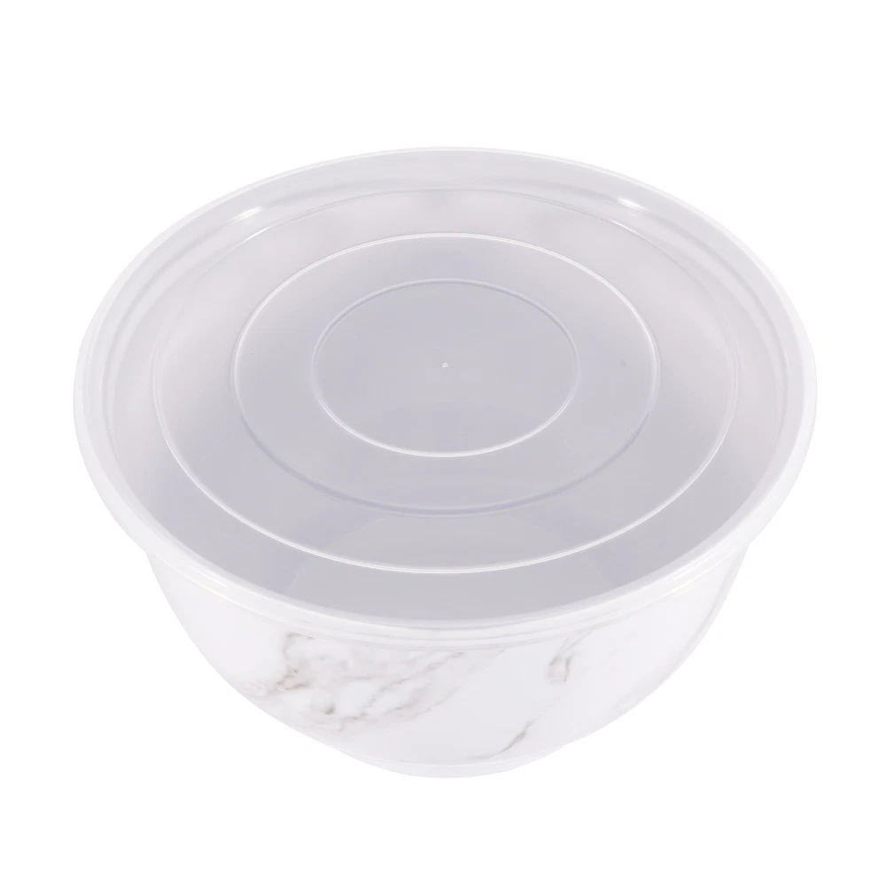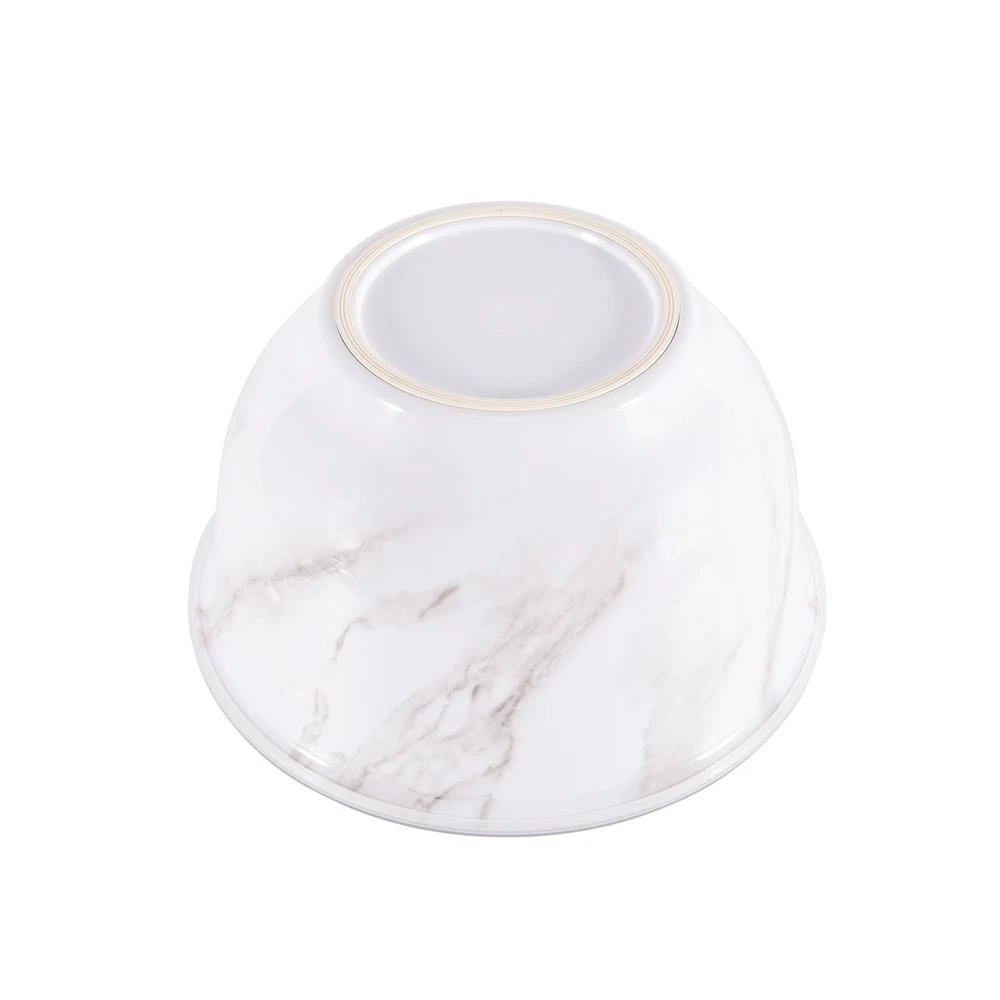 Better Homes & Gardens brand is one of America’s most trusted sources for all things home, and where style meets savings. Their mission is to offer products that help you create a home that matches your personality and lifestyle. There are many options to choose from when it comes to creating the entertaining set that is exactly right for your home. Add style to your serve ware and dinnerware collection with the Better Homes & Gardens 6-Piece Melamine Serving Bowl Set with Lids. Showcasing an elegant faux marble design, this round serve bowl set is sure to impress while you are entertaining or enjoying a meal at home. The beauty and sophistication of the marble design offers a functional and beautiful meal presentation to your table. Designed to mimic the look and feel of traditional ceramic, this round serve bowl set is made of BPA- free Melamine with durability to withstand drops and dishwashers. This smart kitchen staple is designed with you in mind and is sure to become a favorite. Set includes a 10.625-inch diameter bowl, 9.50-inch diameter bowl, and an 8.375-inch diameter bowl, each with lids. Each bowl is staggered in size so you will always find the right fit for your cooking or baking needs. Once you are ready to put them away, simply stack these functional bowls together. The nested design makes for convenient and compact storage which saves space in your cabinets or pantry. All 3 bowls feature a non-skid base. Made with 100% BPA Free Melamine that offers lightweight durability and versatility, this serve bowl set is perfect for everyday functionality and is great for all your entertaining needs. The Melamine Bowl Set with Lids is made from durable melamine that is shatter and impact resistant, making it ideal for family gatherings, indoors or out. Serve pieces and dinnerware in our contemporary styles help you achieve a look that is both chic and warm. Look for additional colors and prints available for purchase. Chic modern style brings a touch of elegance to your tabletop Durable Melamine Serving Bowl Set is ideal for indoor and outdoor, everyday use Dishwasher safe for convenient cleaning Bowls Nest for Easy Store Features Non-Skid Bottom BPA Free, Scratch Resistant, Shatter Resistant, Odor Resistant Material Content: 100% Melamine Set Includes: 1 Large Bowl with Lid, 1 Medium Bowl with Lid, 1 Small Bowl with Lid Dimensions: Large Bowl 10.625-inch Diameter by 6-inch Height, Medium Bowl 9.50-inch Diameter by 5.375-inch Height, Small Bowl 8.375-inch Diameter by 4.75-Inch Height Capacity: Large Bowl 5.5-Quart (5.2 L), Medium Bowl 3.9-Quart (3.6 L), Small Bowl 2.6-Quart (2.4 L) Not recommended for microwave use Shop the entire BHG Melamine Serve selection, available online and in stores