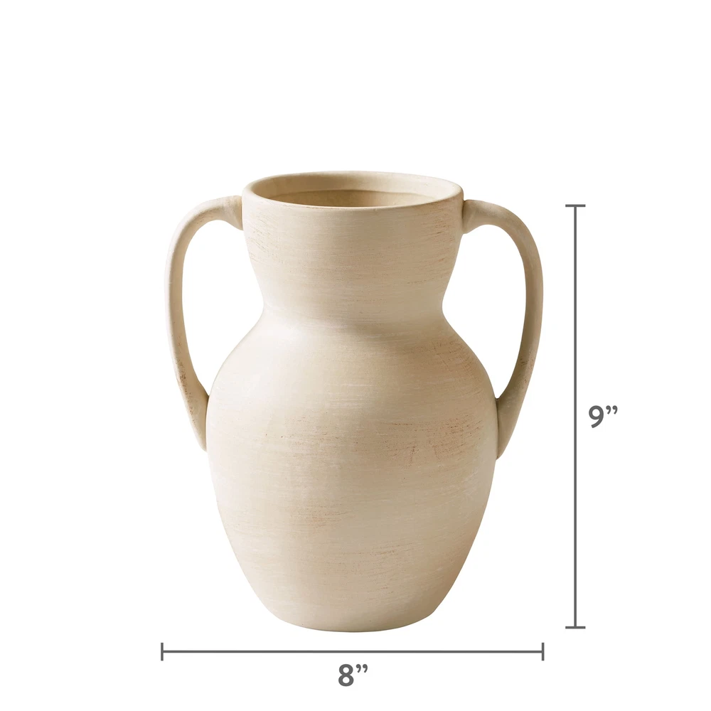Add a touch of handmade elegance to your tabletop with the Better Homes & Gardens 8.75" Ceramic Handled Vase, Taupe. The ceramic handled vase has a subtle taupe color that allows it to complement a variety of home décor styles. Use it to display beautiful floral arrangements or leave it empty - either way it makes a beautiful addition to your décor. This bowl is also a great gift to give for holidays, housewarmings, birthdays and more. It measures approximately 8.75” high and is approximately 6” in diameter, making it the perfect size to display on a entry way table, coffee table, tabletop, vanity and more. On Feb 15, 2025 at 00:25:53 PST, seller added the following information: