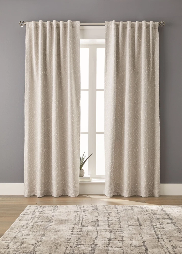 Curtain Width: 50 in Age Group: Adult Type: Curtains & Drape Assembled Product Dimensions (L x W x H): 84.00 x 50.00 x 1.00 Inches Recommended Location: Indoor Color: Beige Home Decor Style: Traditional Number of Panels: 1 Pattern: boucle Curtain Length: 84 in UPC: 214129867653 Assembled Product Weight: 2.5 lb gtin13: 214129867653 Theme: Boucle Model: BHF128001798102 Material: Polyester Curtain & Valance Type: Curtain Sets Brand: Better Homes & Gardens