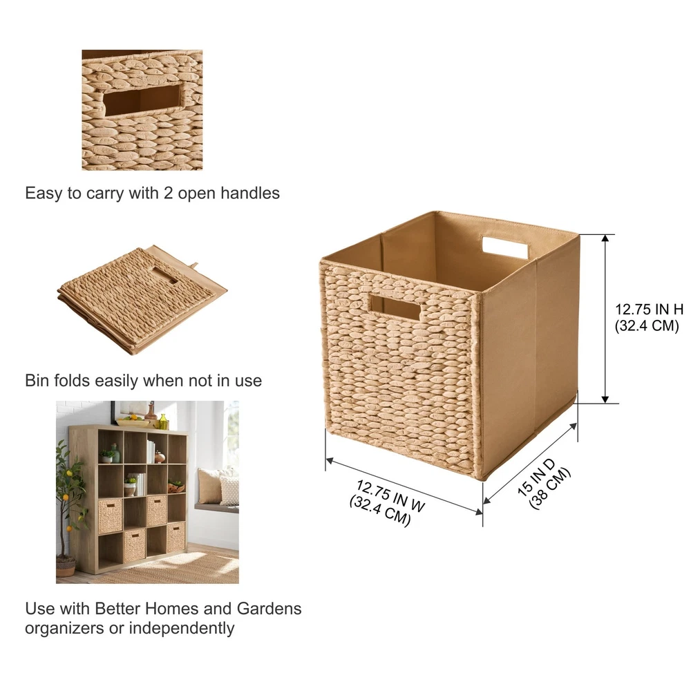 Better Homes & Gardens Collapsible Water Hyacinth Woven Storage Cube