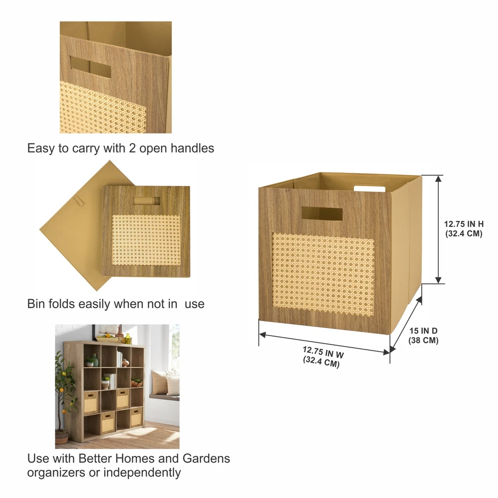 These Better Homes and Gardens Cube Storage Bins are a versatile and indispensable item for your home, office or small business. You can use them to store documents, files, toys, electronics, supplies, small equipment, kids to adult clothes and much more. This storage bin measures 12.75" x 12.75" x 15" with two handles to make it easy to carry and transport them. With a variety of colors to choose from, you'll be able to perfectly match your home decor when you get organized with our Better Homes & Gardens Fabric Cube Storage Bins. Includes 2 storage cubes Ideal for storing books or kids and adult clothing in the bedroom, living room, laundry room or dorm rooms Can be used with our Better Homes & Gardens cube organizers (sold separately) or independently Folds flat for storage when not in use Dimensions of storage bin: 12.75" Wide x 12.75" Height x 15" Deep