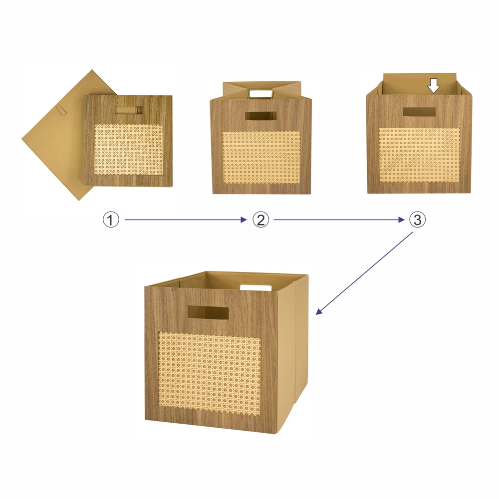 Item Height: 12.75 in Mounting: Free Standing gtin13: Does not apply UPC: Does not apply Shape: Square Type: Storage Basket Brand: Unbranded Color: Beige Item Length: 12.81 in Material: Fabric, Rattan Country/Region of Manufacture: United States Item Width: 15.00 in Number of Compartments: 2 Features: Stackable, Woven