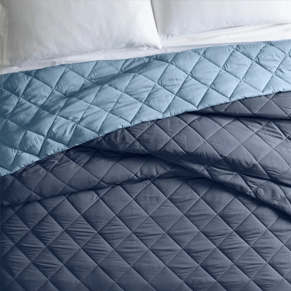 Add a pop of color and style to your bedroom with this reversible comforter, designed for adults. One side features soft, cooling microfiber polyester, while the other has a cotton bottom for added texture and comfort. Its seamless, reversible design lets you easily change the look of your room. Machine washable for easy care, this lightweight comforter offers style, versatility, and convenience for any season. On Feb 16, 2025 at 18:37:30 PST, seller added the following information: