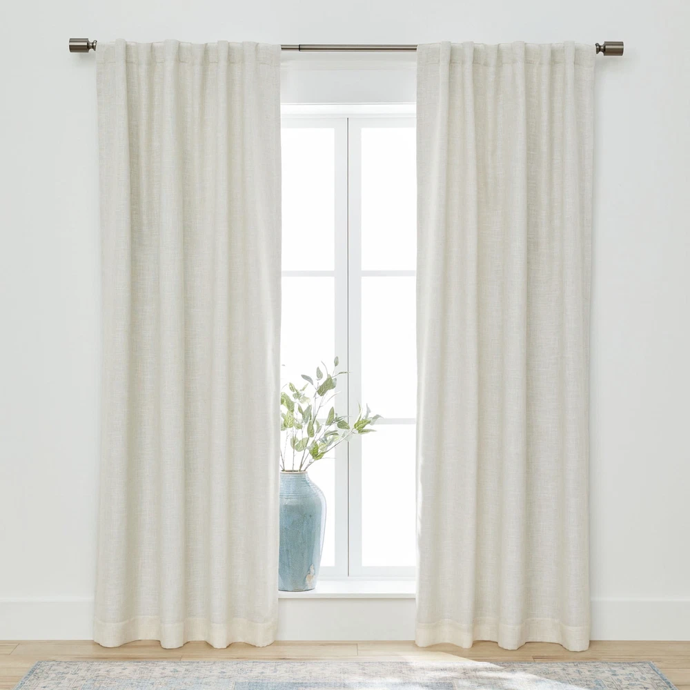 Fashion meets function with Better Homes & Gardens Linen-Blend Curtain Panel. A chic and dramatic look for any window in your home, this curtain has a blackout lining to help block out sun, noise and provide privacy and insulation. The rod-pocket top allows for effortless, fuss-free installation, the simple design easily integrates with the décor in any room and the panel is machine washable so maintaining that fresh look is a breeze. Includes: 1 curtain panel Dimensions: 50” W x 84” L Hanging Style: Rod pocket for easy hanging and styling Light Filtration: Blackout and noise reducing Material: 90% Polyester10% Linen Care: Machine washable Why You’ll Love It: Blackout properties filter out the sun; perfect for sleeping in or mid-day movie marathons. Style Tip: For windows you open often, choose sill length. For a casual look, let the fabric fall a few inches below the window. For a tailored or dramatic look, choose floor length curtains to make your windows a focal point Linen Blend Blackout Curtain Panel from Better Homes & Gardens